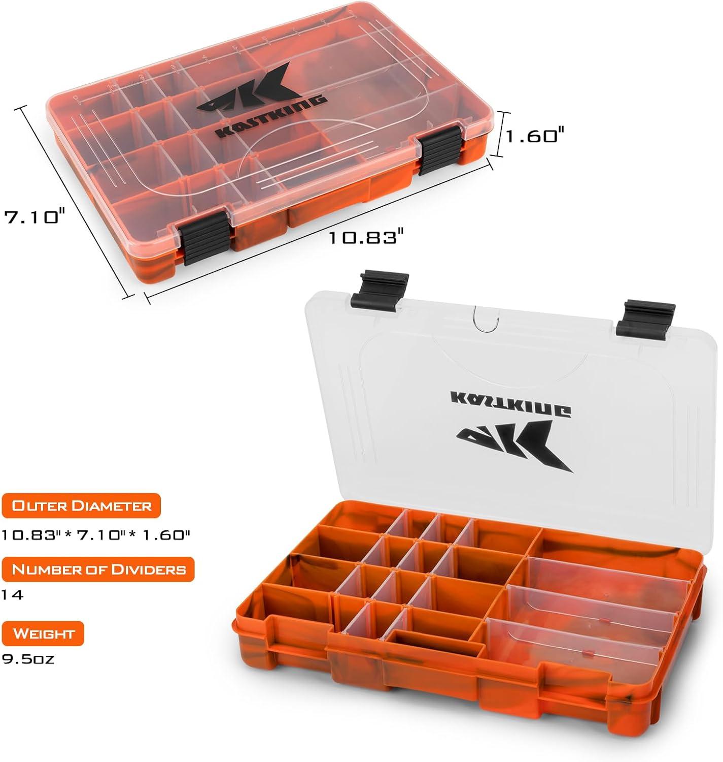 Durable and Secured Construction: The KastKing fishing tackle box boasts heavy-duty construction, guaranteeing maximum durability and impact resistance, making it the perfect choice for storing lures and other terminal tackle. Its robust design includes sturdy molded latches that keep your contents securely in place. The surface and bottom of the plastic tackle box are designed with anti-slip texture lines for added convenience and security.