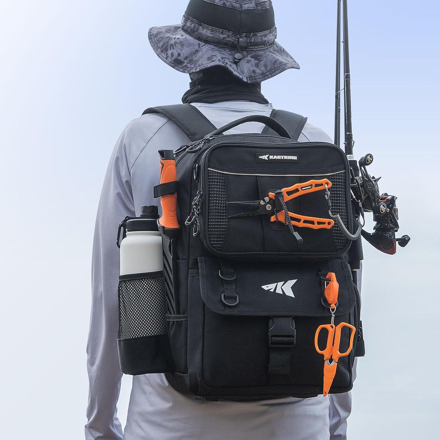 KastKing BaitSpace 50L Fishing Tackle Backpack with Removable Bait Binder,2 Rod Holders Storage Fishing Gear and Equipment(H: Black(without Tackle Box))