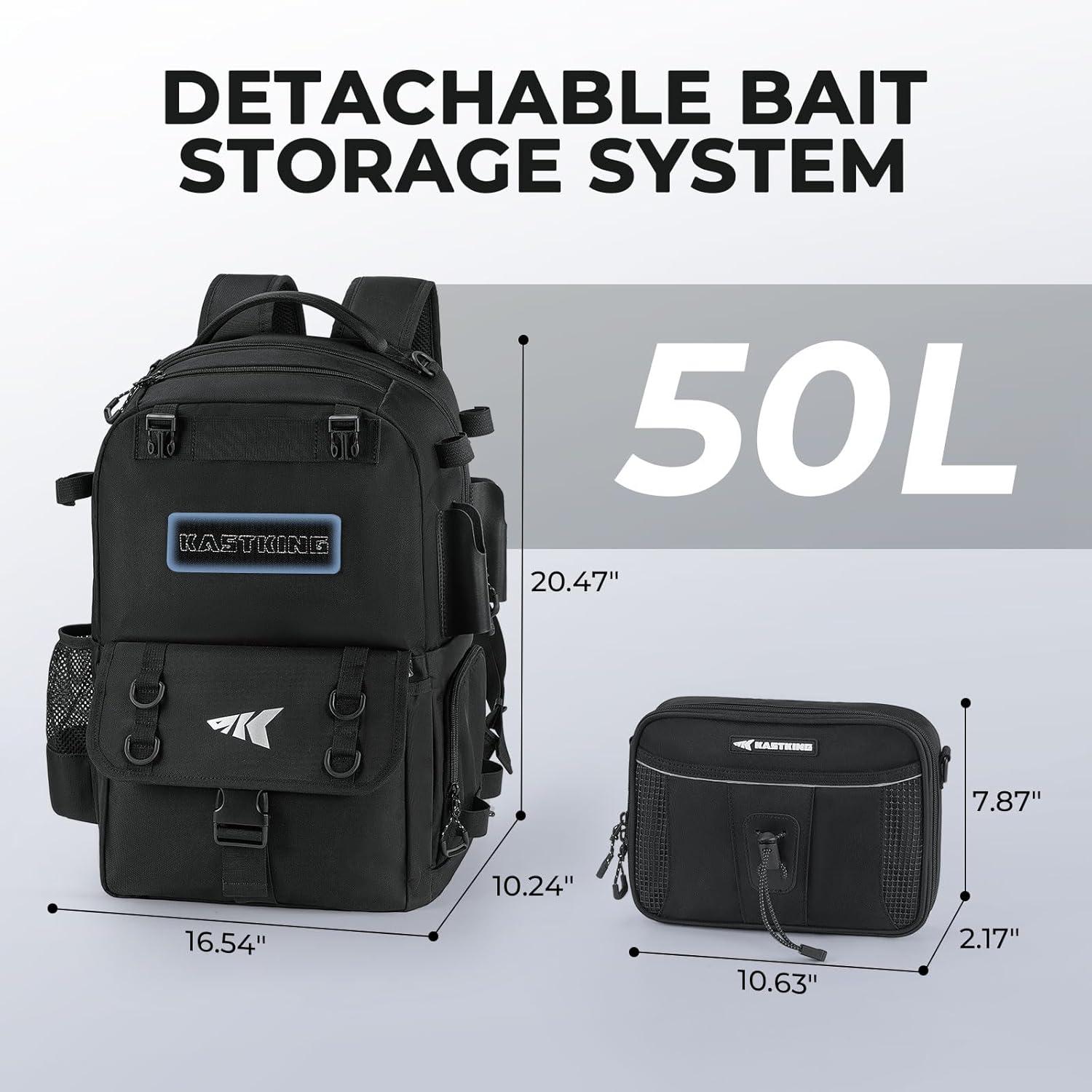 KastKing BaitSpace 50L Fishing Tackle Backpack with Removable Bait Binder,2 Rod Holders Storage Fishing Gear and Equipment(H: Black(without Tackle Box))