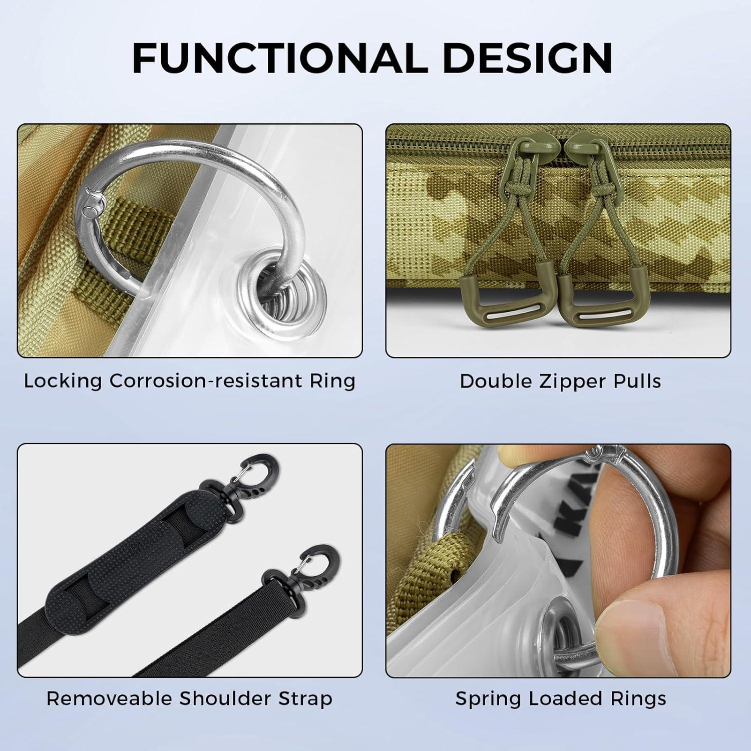 KastKing BaitSpace Detachable Bait Binder Tackle Bag – Large Clear Sleeves, Durable 900D Water-resistant Fabric, Soft Plastic Bait Storage For Hooks, Sinkers & Fishing Accessories(Khaki)
