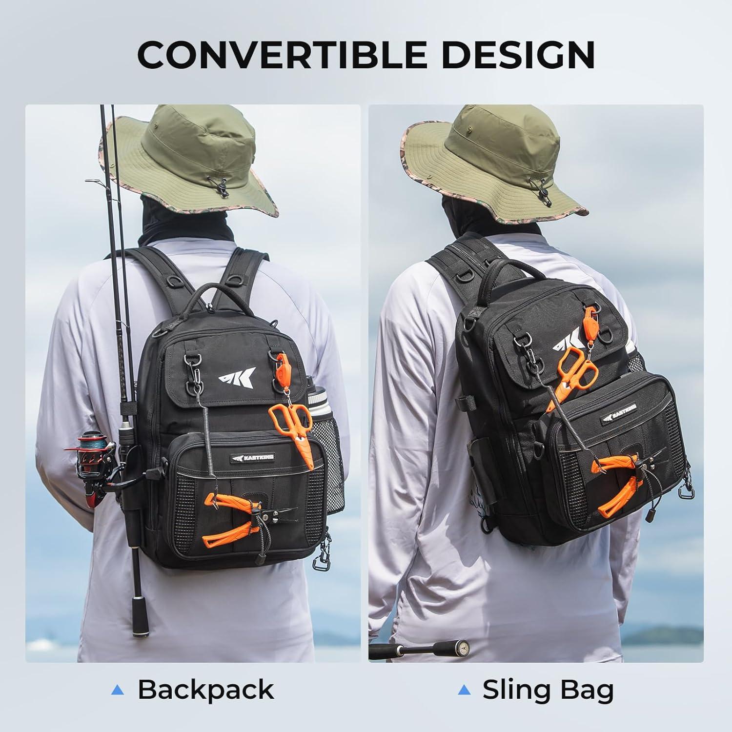 VERSATILE FISHING SLING BAG & BACKPACK – The KastKing Standard BaitSpace Fishing Tackle Sling Bag is designed for anglers on the go. Perfect for bank fishing, wader fishing, or fishing with your buddy on boat. This lightweight yet spacious bag adapts to your needs with a convertible sling or backpack-style design for hands-free convenience.