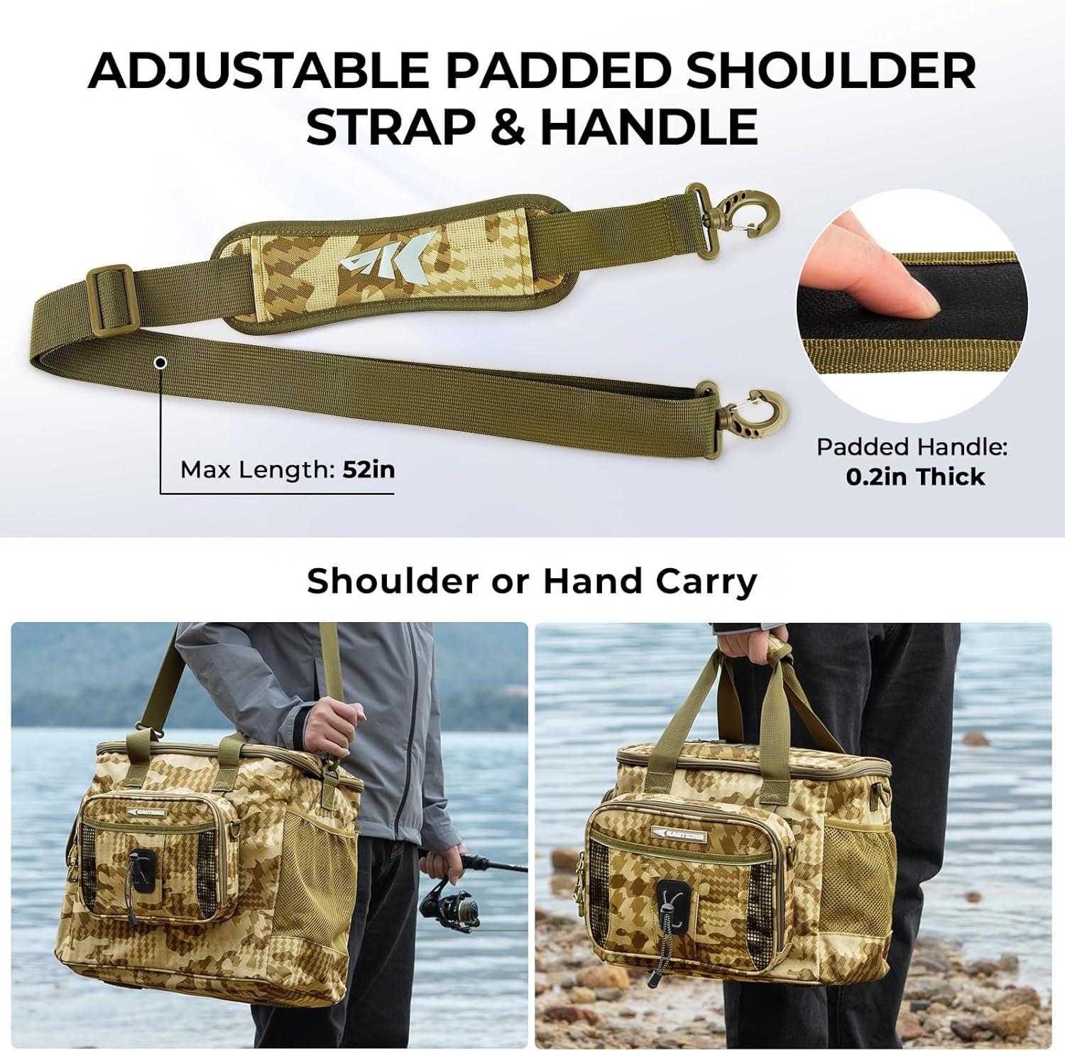 KastKing BaitSpace Fishing Tackle Bag With 4 Tackle Boxes & Removable Bait Binder, Water-Resistant Tackle Storage, Durable Fishing Gear, Adjustable Shoulder Strap(B: Khaki Camo)