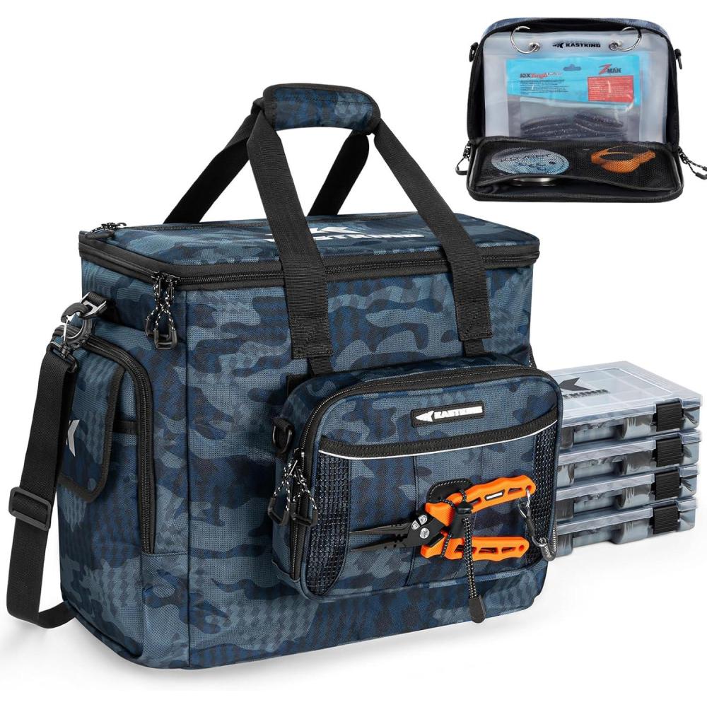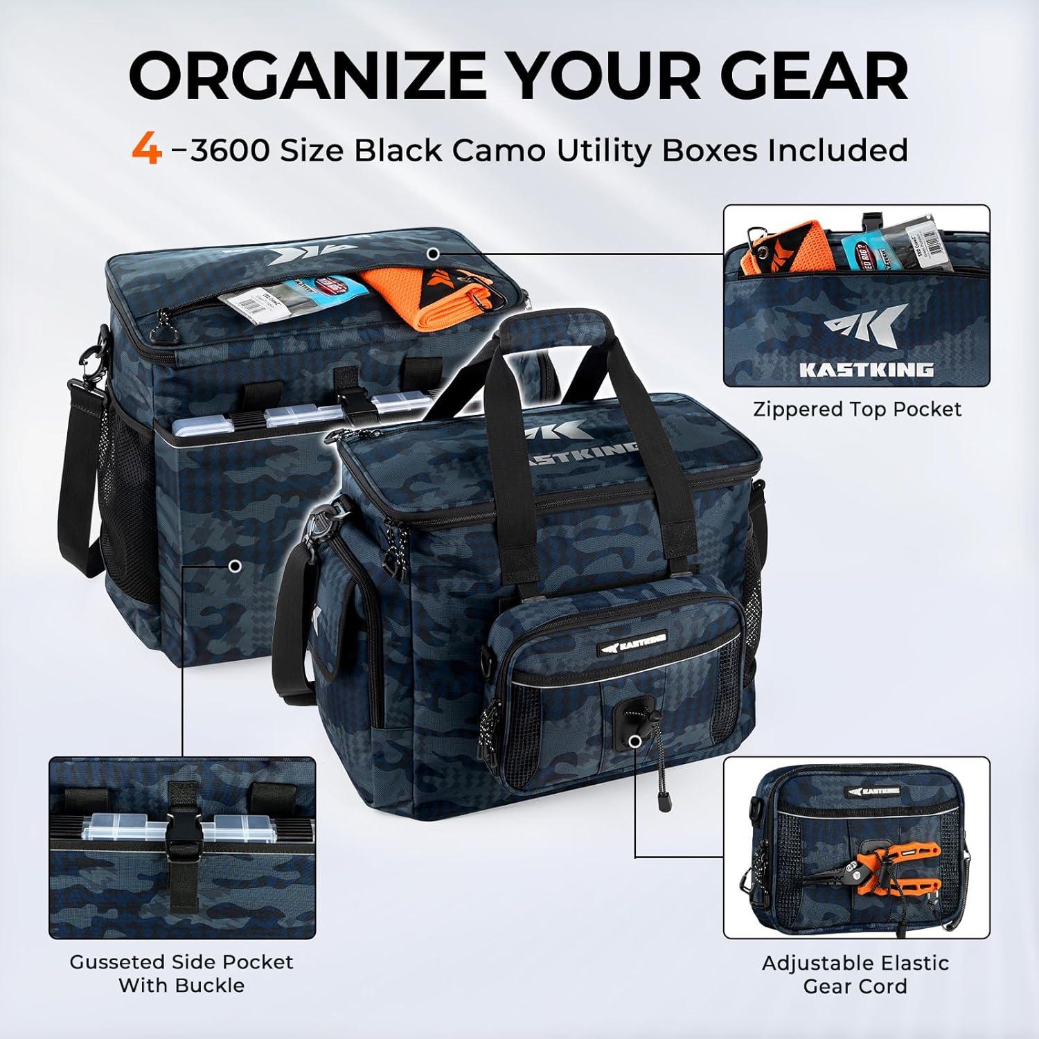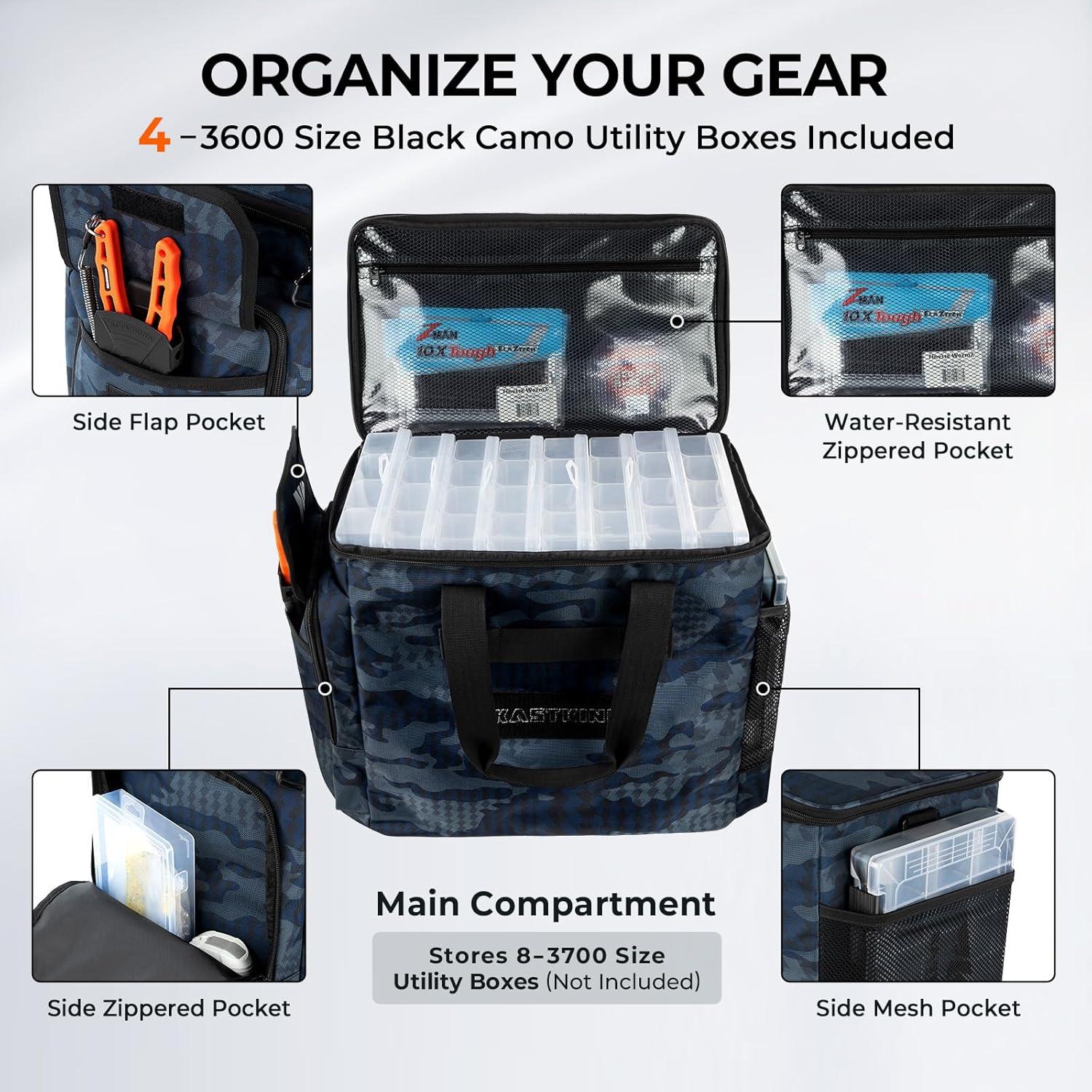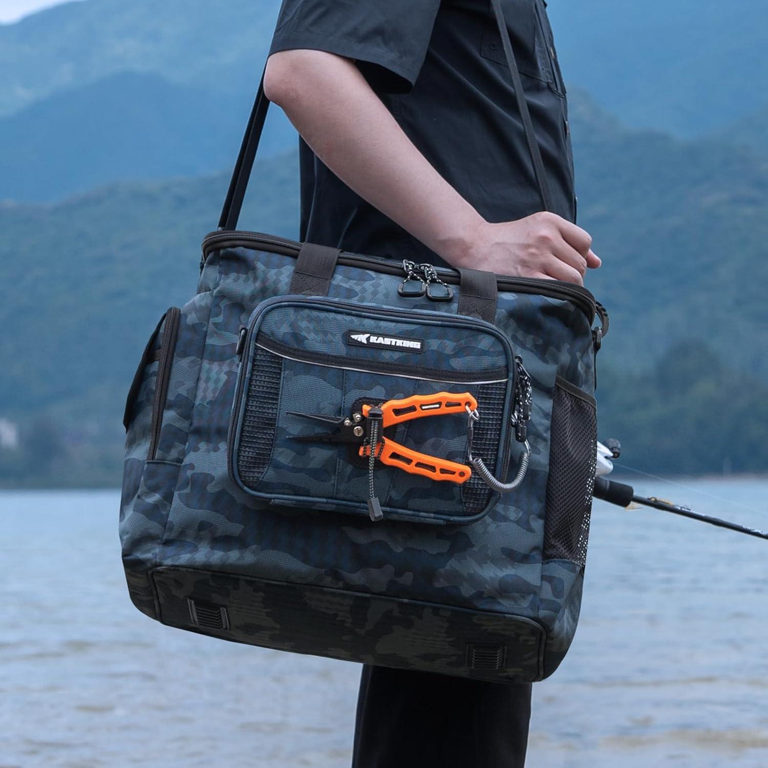 Durable & Water-Resistant – The KastKing BaitSpace Fishing Tackle Bags are made with heavy-duty nylon oxford fabric and a waterproof PVC coating to protect your gear. An internal EPE foam layer adds extra impact resistance, while non-slip feet keep the bag stable in any fishing environment.