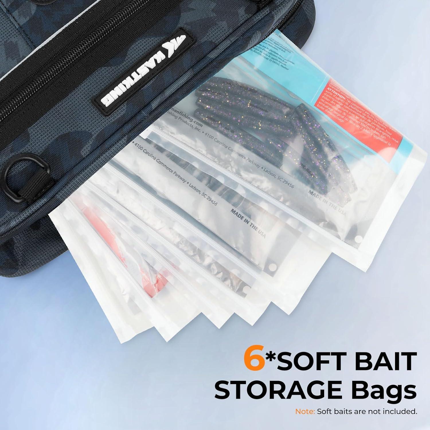Versatile Storage Options for All Your Fishing Gear: The KastKing BaitSpace Waist Bag is designed with anglers in mind, featuring multiple storage compartments for ultimate organization. It includes an internal mesh pocket for small accessories, a rod pocket to secure your rod, a beverage holder to keep drinks handy, a plier pocket, and two gear sleeves. Additionally, it comes with six soft bait storage bags, making it easy to keep your fishing essentials organized and ready to use