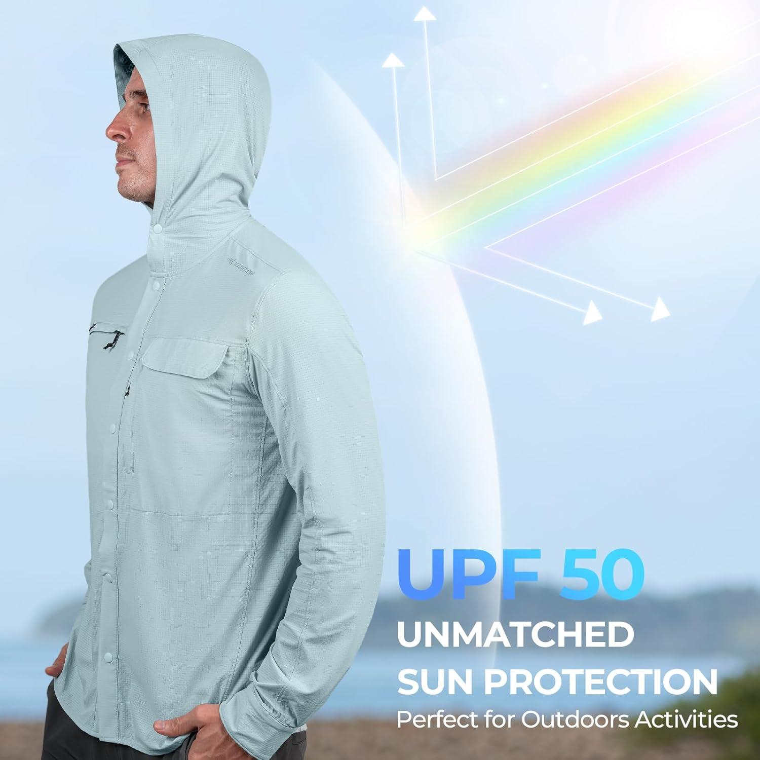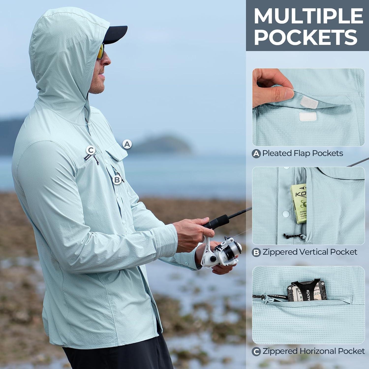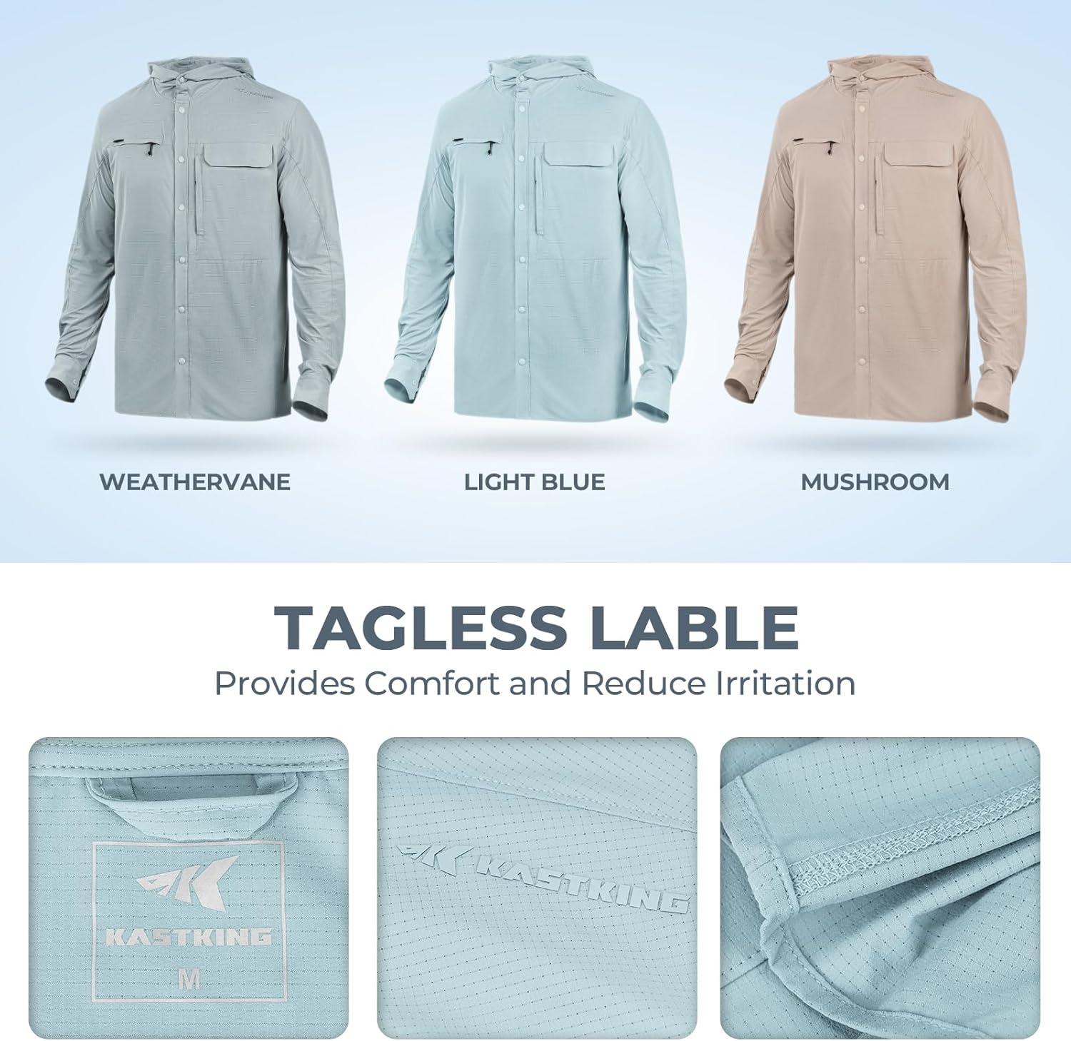 KastKing Baxter Pass UPF 50+ Long Sleeve Shirt with Hood – Breathable, Quick-Dry, 4-Way Stretch, Multi Design for Outdoors(Light Blue)