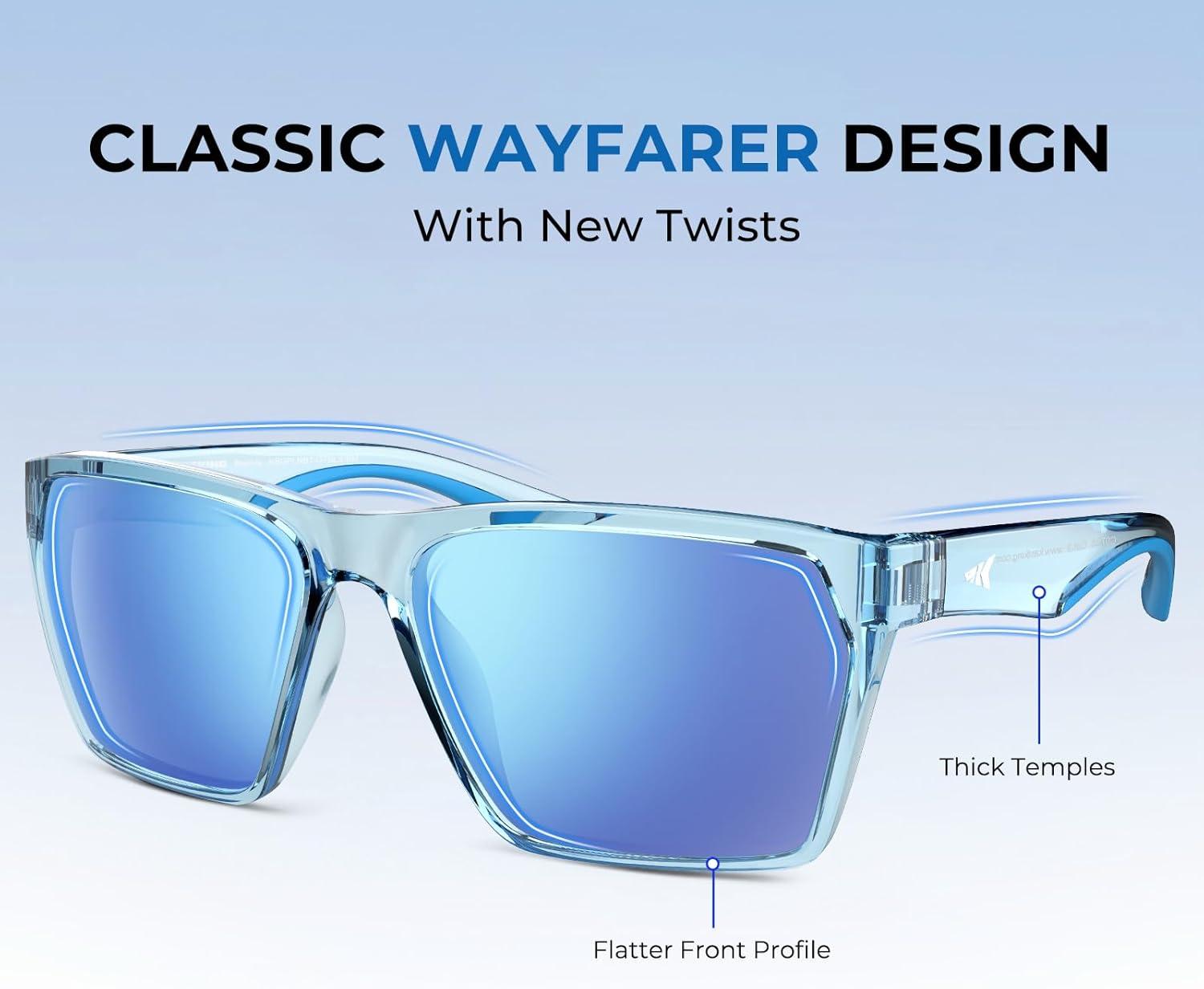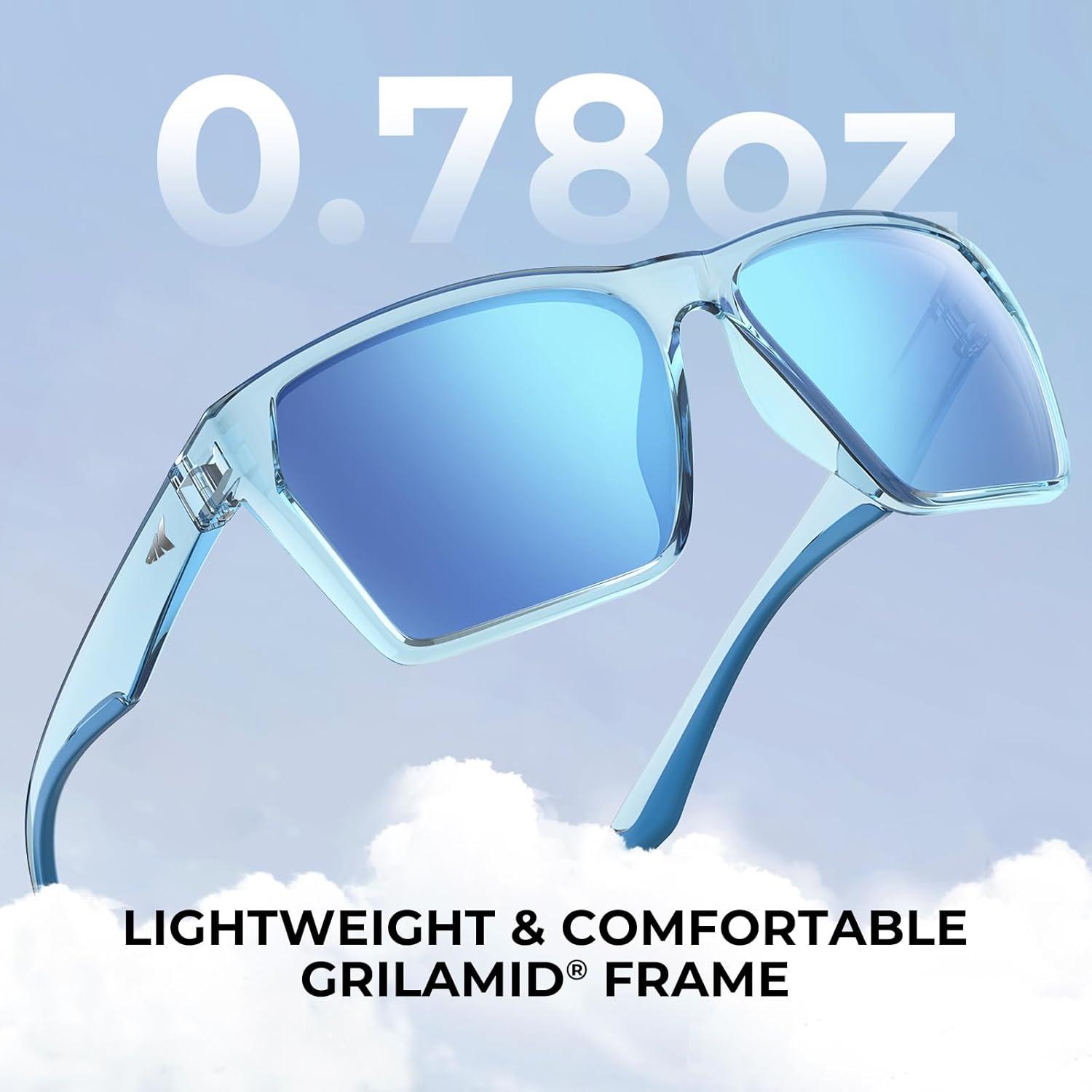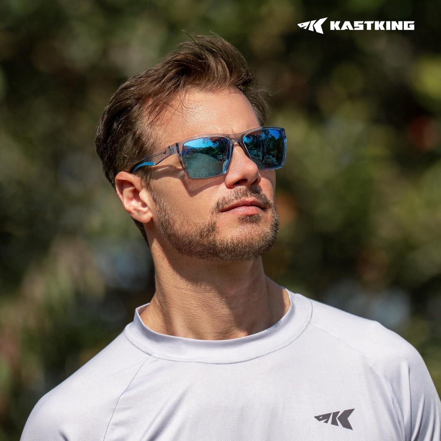 KastKing Beartrap Polarized Sports Fishing Sunglasses, With PuriVex Protective Lens Coating, Wayfarer Design, Men Women(A: Gloss Tal Light Blue Crystal Frame Ice Blue Mirror)