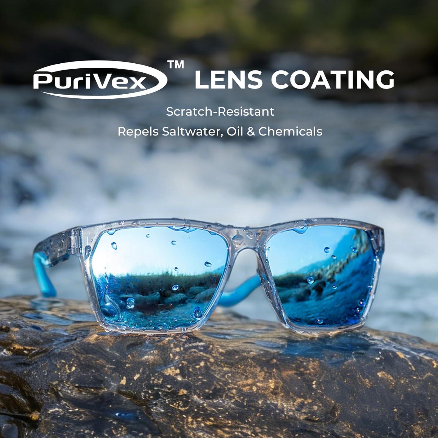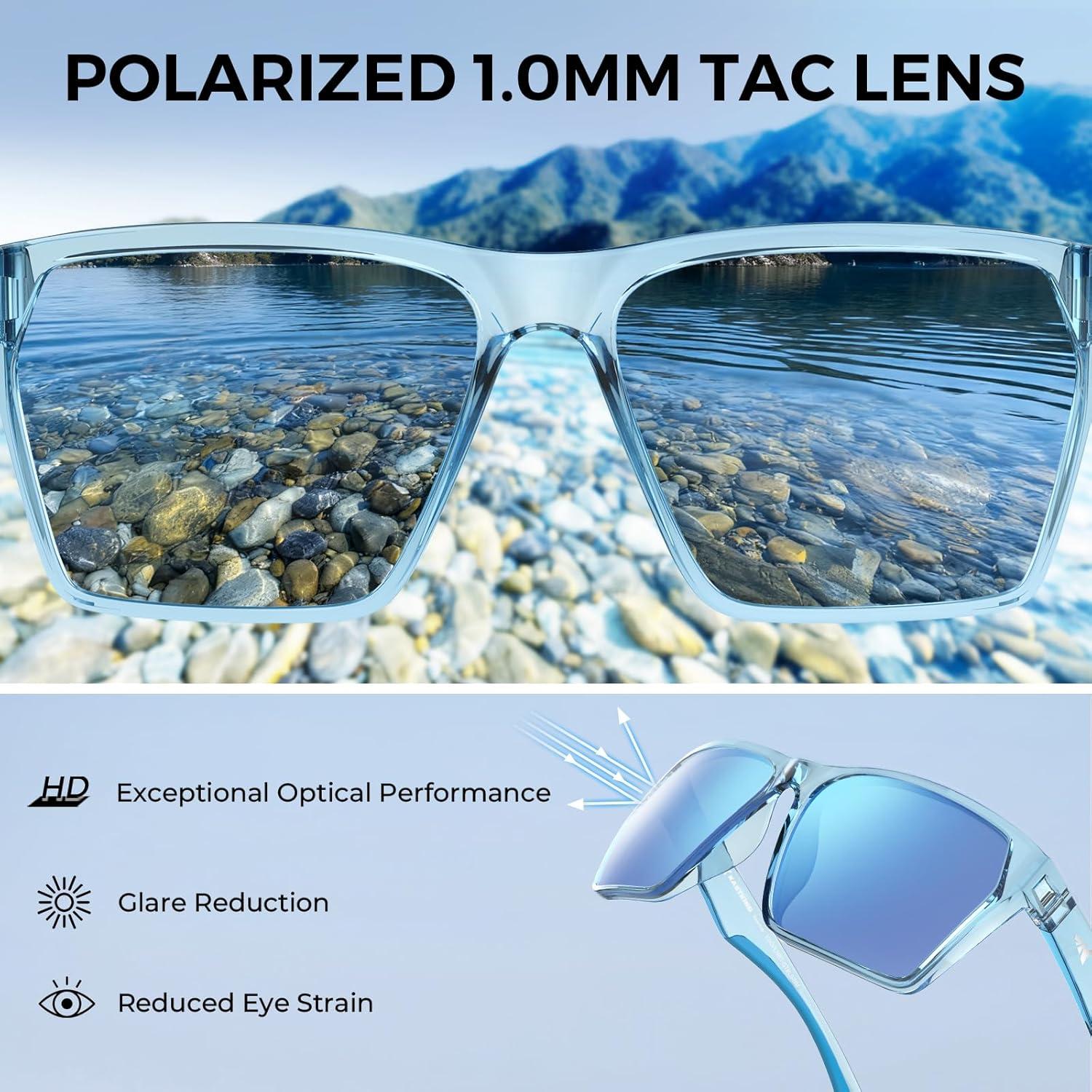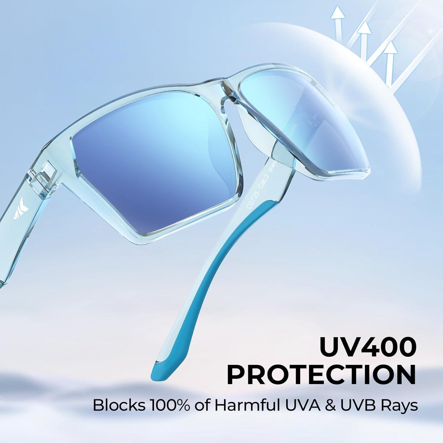 KastKing Beartrap Polarized Sports Fishing Sunglasses, With PuriVex Protective Lens Coating, Wayfarer Design, Men Women(A: Gloss Tal Light Blue Crystal Frame Ice Blue Mirror)