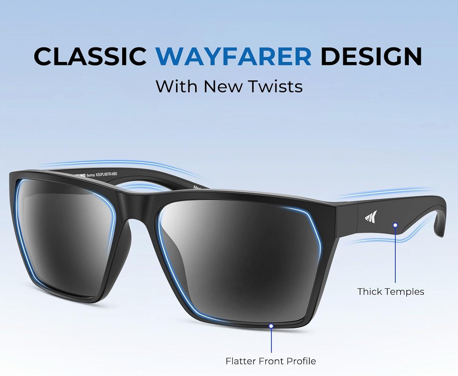 KastKing Beartrap Polarized Sports Fishing Sunglasses, With PuriVex Protective Lens Coating, Wayfarer Design, Men Women(B: Matte Black Frame Smoke)