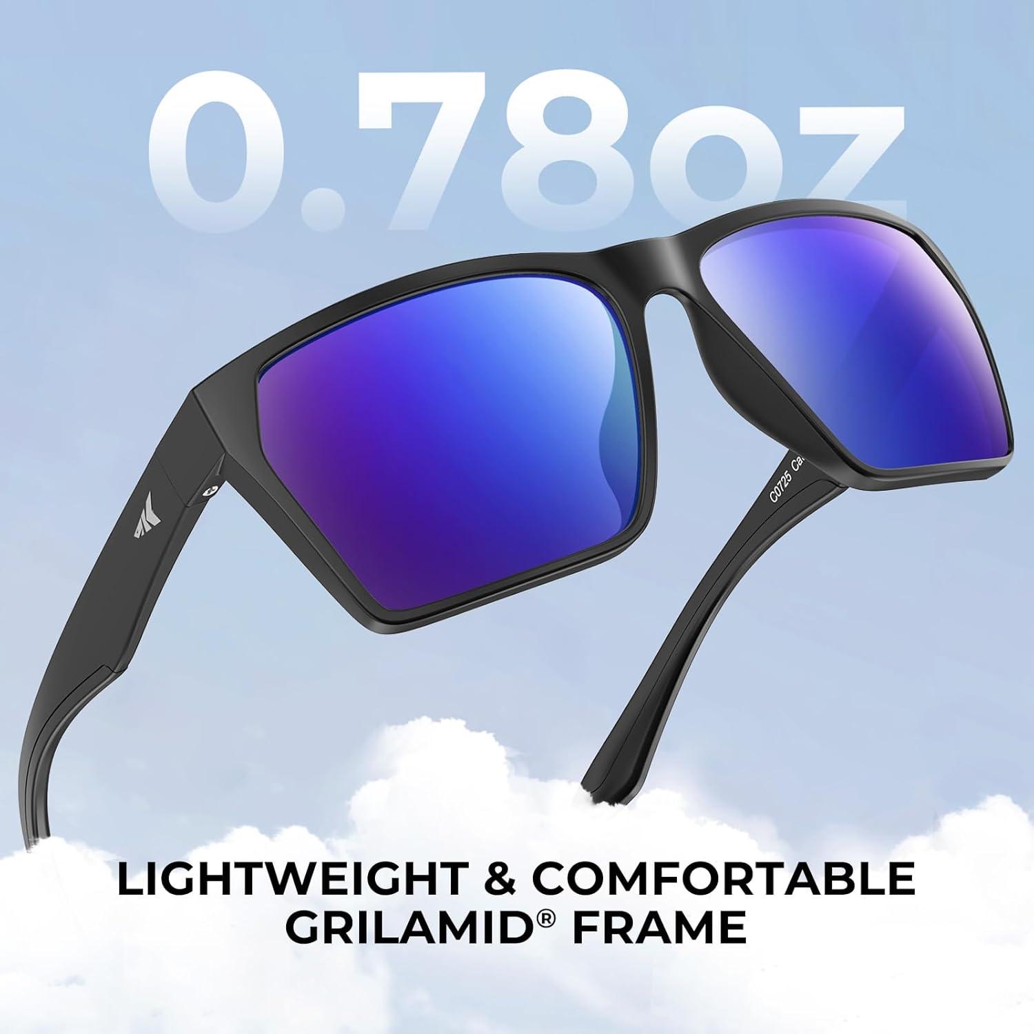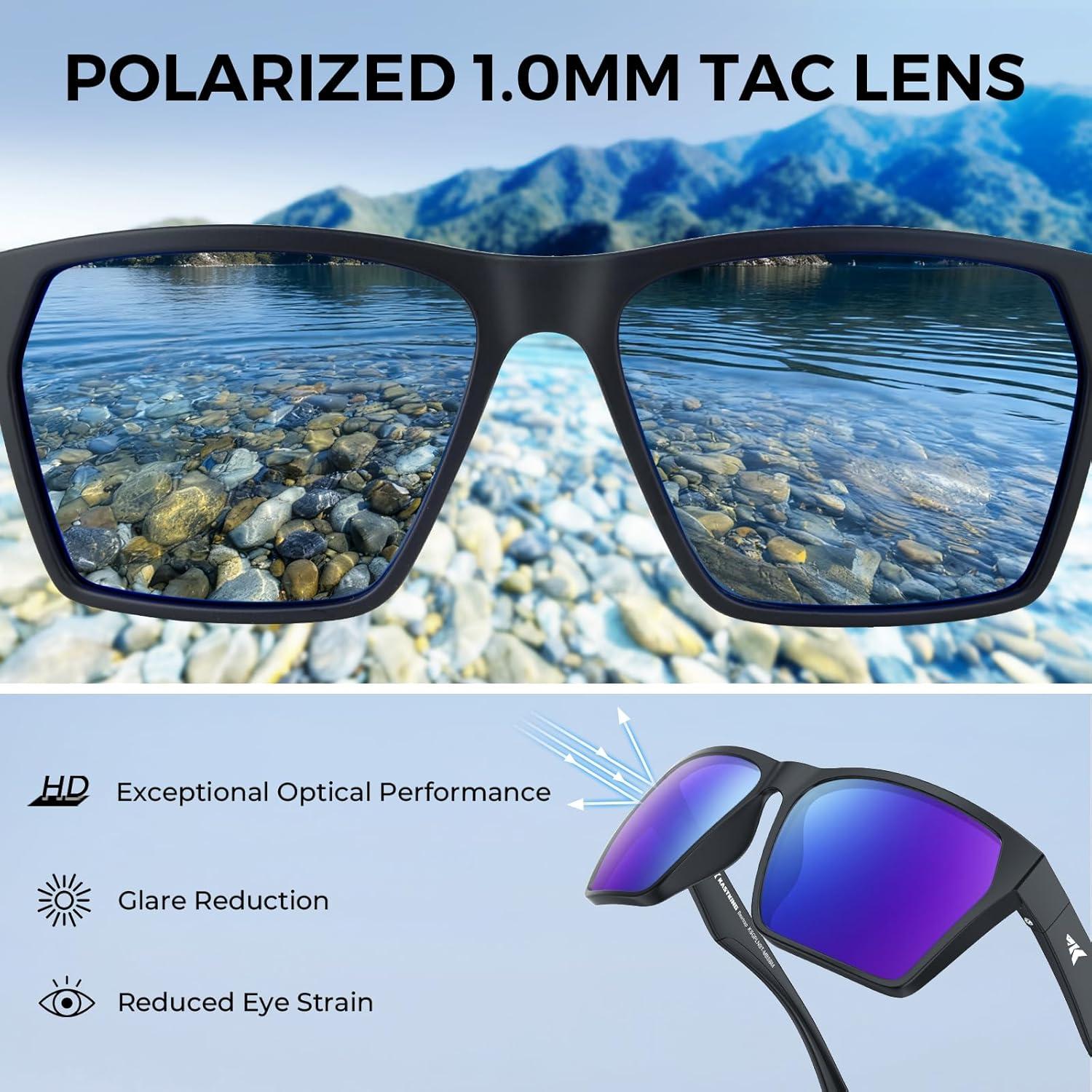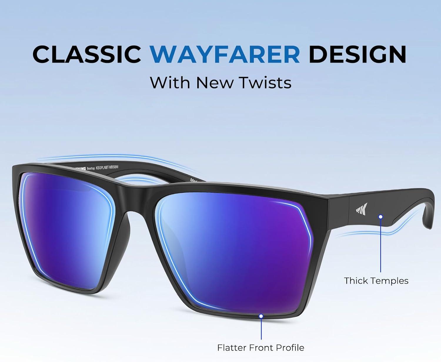 KastKing Beartrap Polarized Sports Fishing Sunglasses, With PuriVex Protective Lens Coating, Wayfarer Design, Men Women(C: Matte Black Frame Cobalt Mirror)