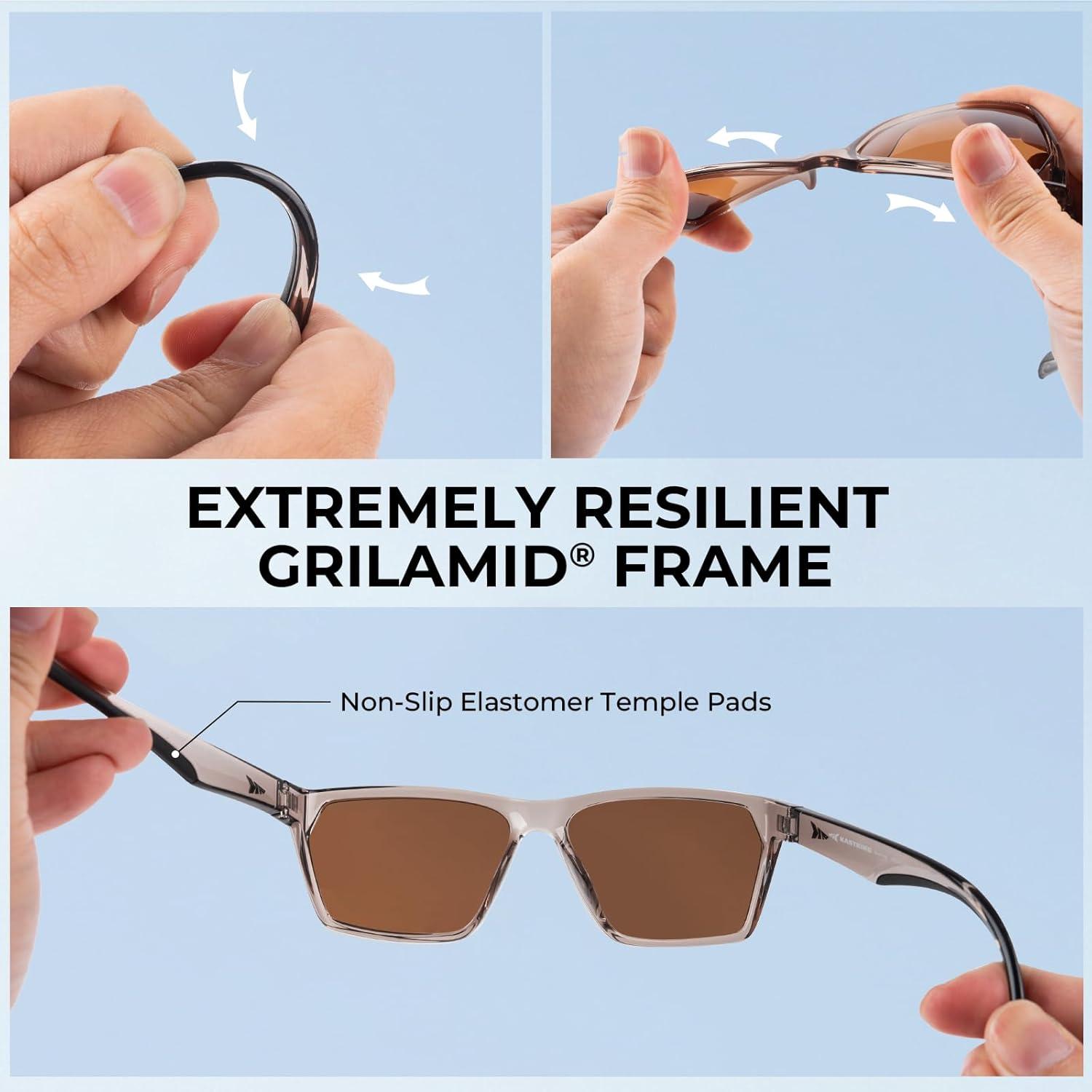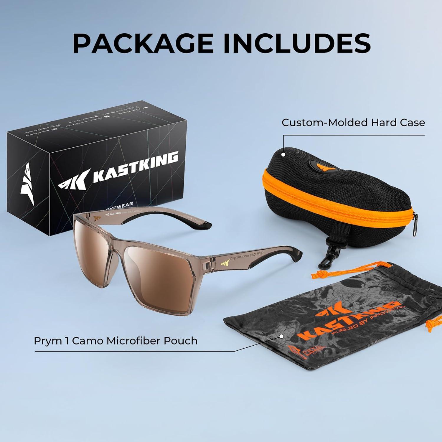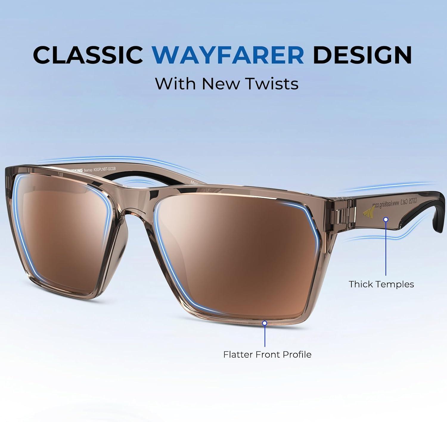 KastKing Beartrap Polarized Sports Fishing Sunglasses, With PuriVex Protective Lens Coating, Wayfarer Design, Men Women(F: Gloss Gray Crystal Frame Brown)