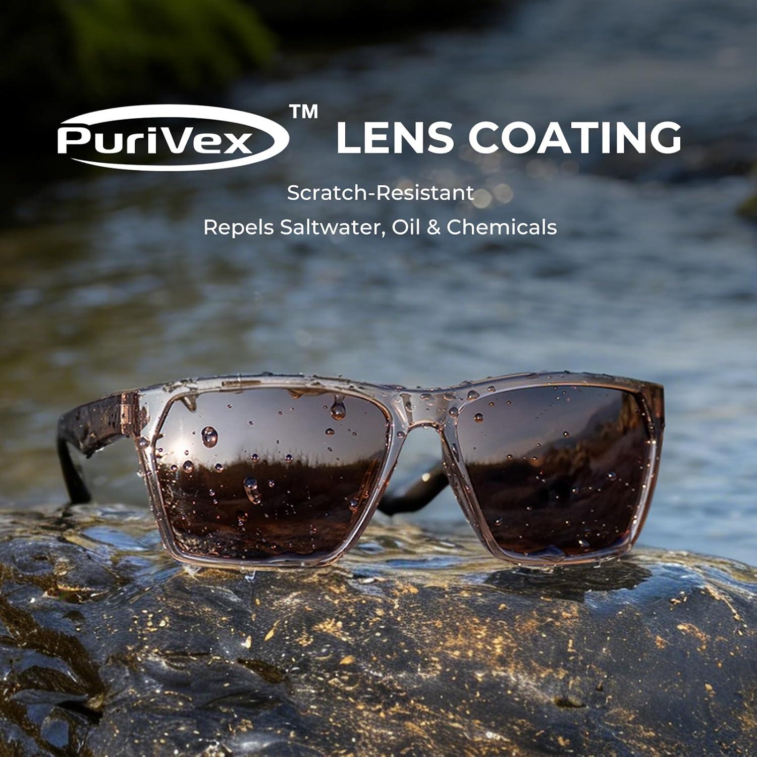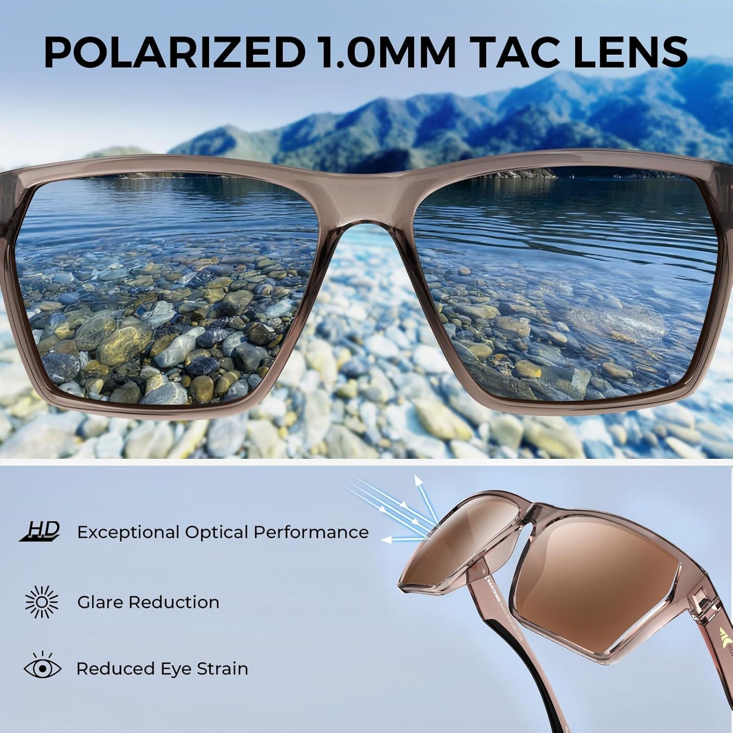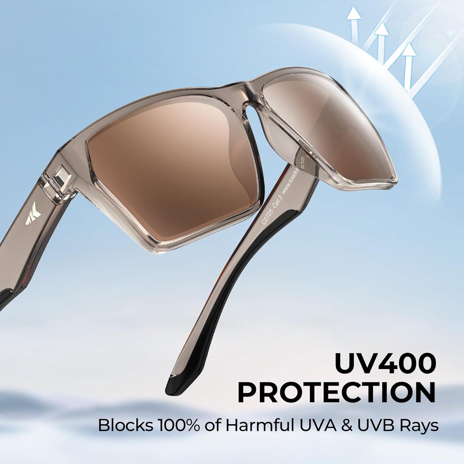 KastKing Beartrap Polarized Sports Fishing Sunglasses, With PuriVex Protective Lens Coating, Wayfarer Design, Men Women(F: Gloss Gray Crystal Frame Brown)