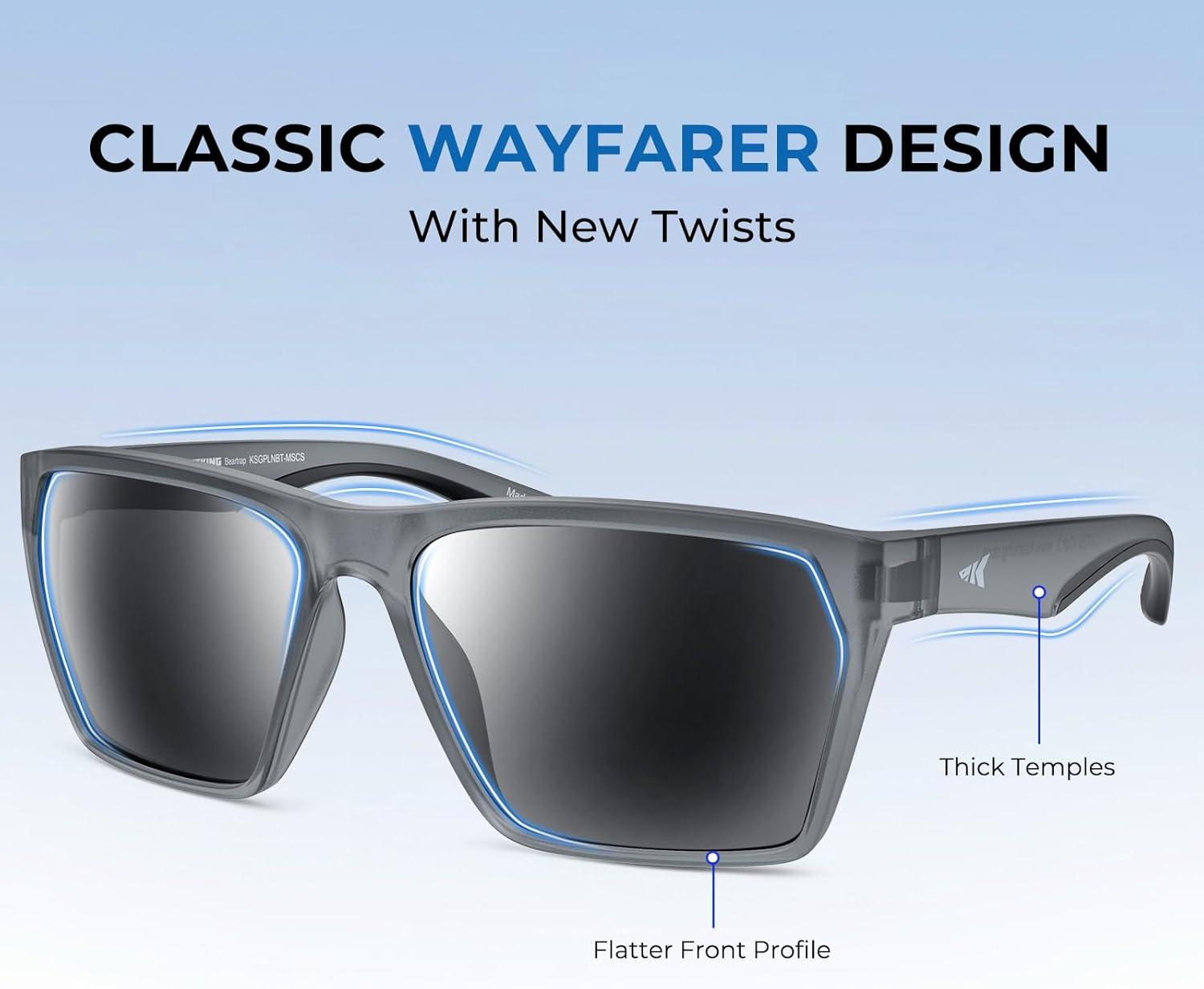 KastKing Beartrap Polarized Sports Fishing Sunglasses, With PuriVex Protective Lens Coating, Wayfarer Design, Men Women(H: Matte Smoke Crystal Frame Smoke)