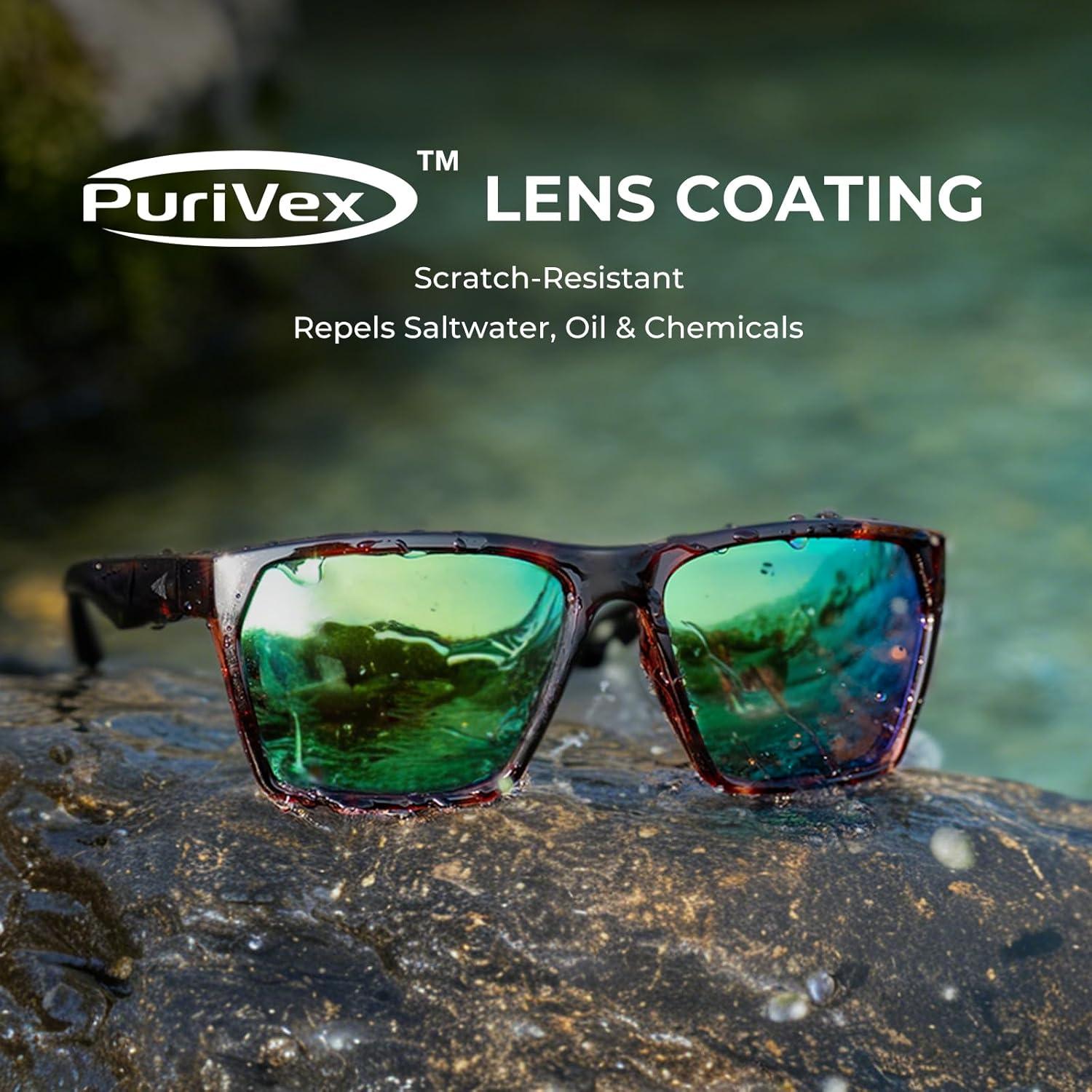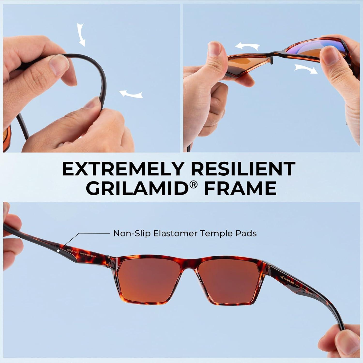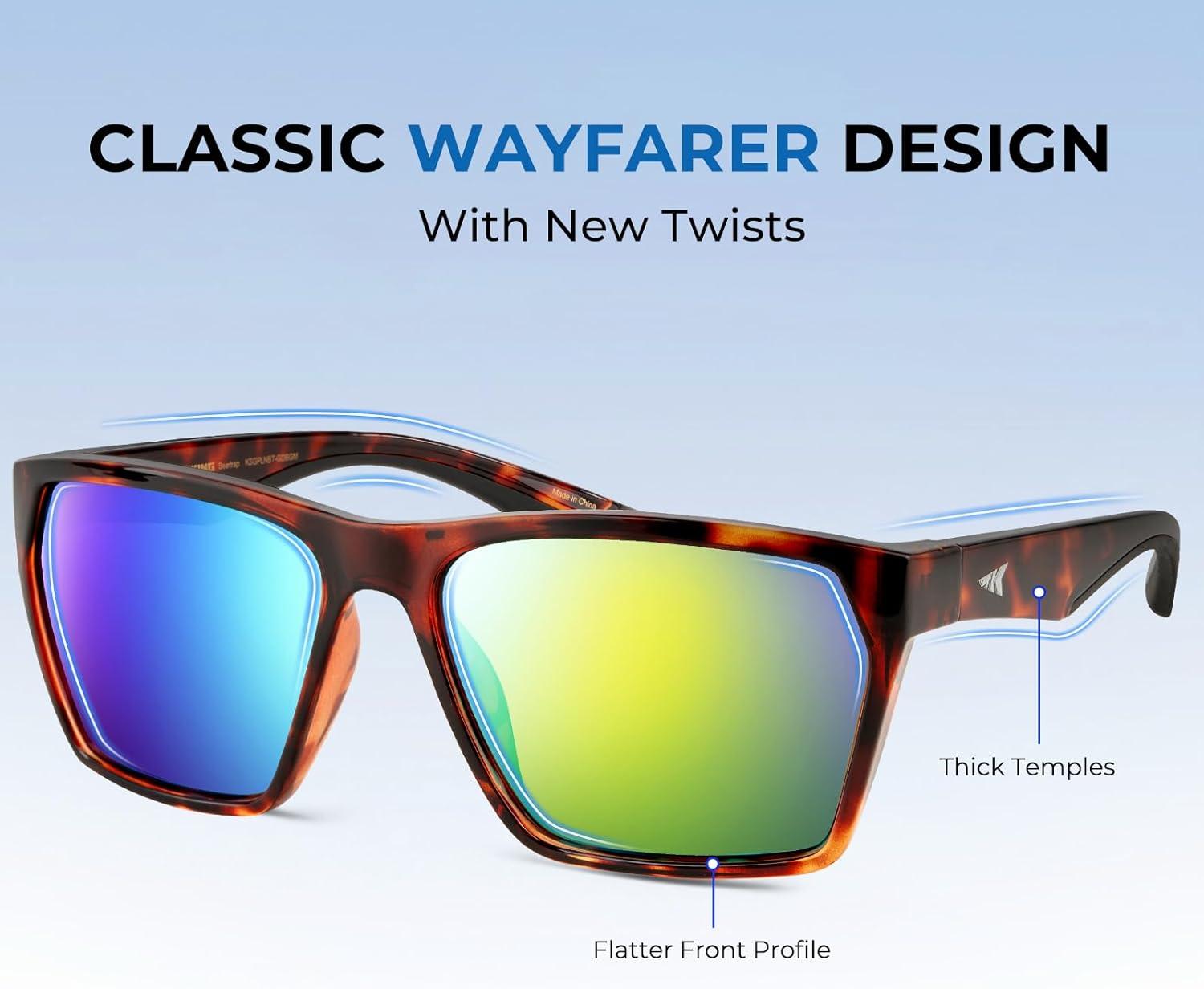 KastKing Beartrap Polarized Sports Fishing Sunglasses, With PuriVex Protective Lens Coating, Wayfarer Design, Men Women(K: Gloss Demi Frame Chartreuse Mirror)