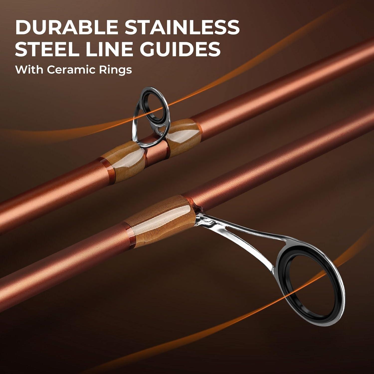 Stainless Steel Guides With Aluminum Oxide Rings: The stainless steel line guides are equipped with aluminum oxide rings, offering exceptional durability and sensitivity. Perfectly suited for monofilament, fluorocarbon, and braided lines, they ensure smooth performance and reduce friction for effortless casting.
