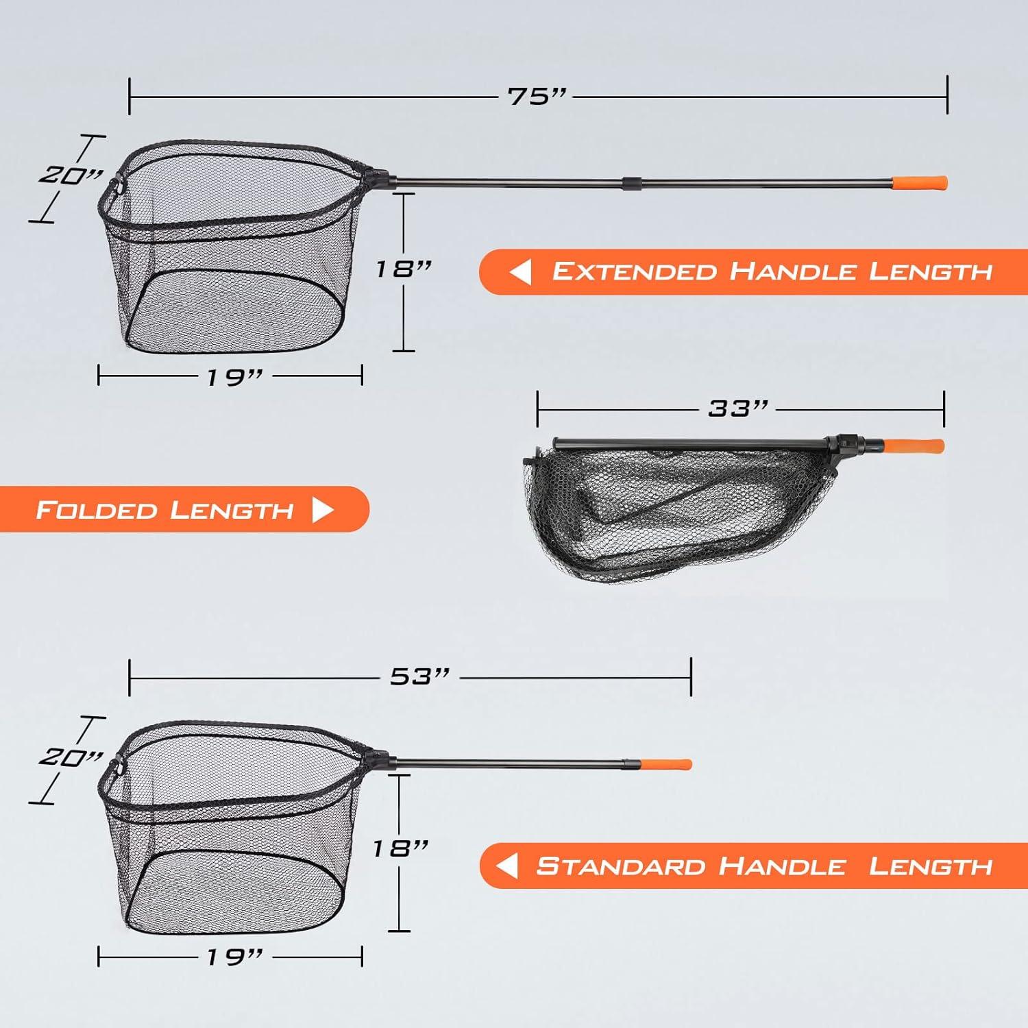 KastKing Brutus Fishing Net, Foldable Extendable Fish Landing Net, Lightweight & Portable Fishing Net with Soft EVA Foam Handle, Holds up to 44lbs/20KG, Fish-Friendly Mesh for a Safe Release(C: PVC net - Hoop Size: 19''- 20''- 18'' (extendable))
