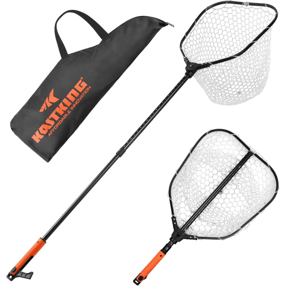 Enhanced Features: KastKing Brutus Folding Landing Nets feature a telescoping handle design; the second extension handle can extend to a full 75″ long for longer reach. Comes with a convenient storage bag, which protects the net when not in use. The end of the handle features a durable, molded butt cap for clearing obstructions and minimizing slippery pushing when using the boat hook, with molded grooves for better surface contact and a widened contact surface for improved stability.