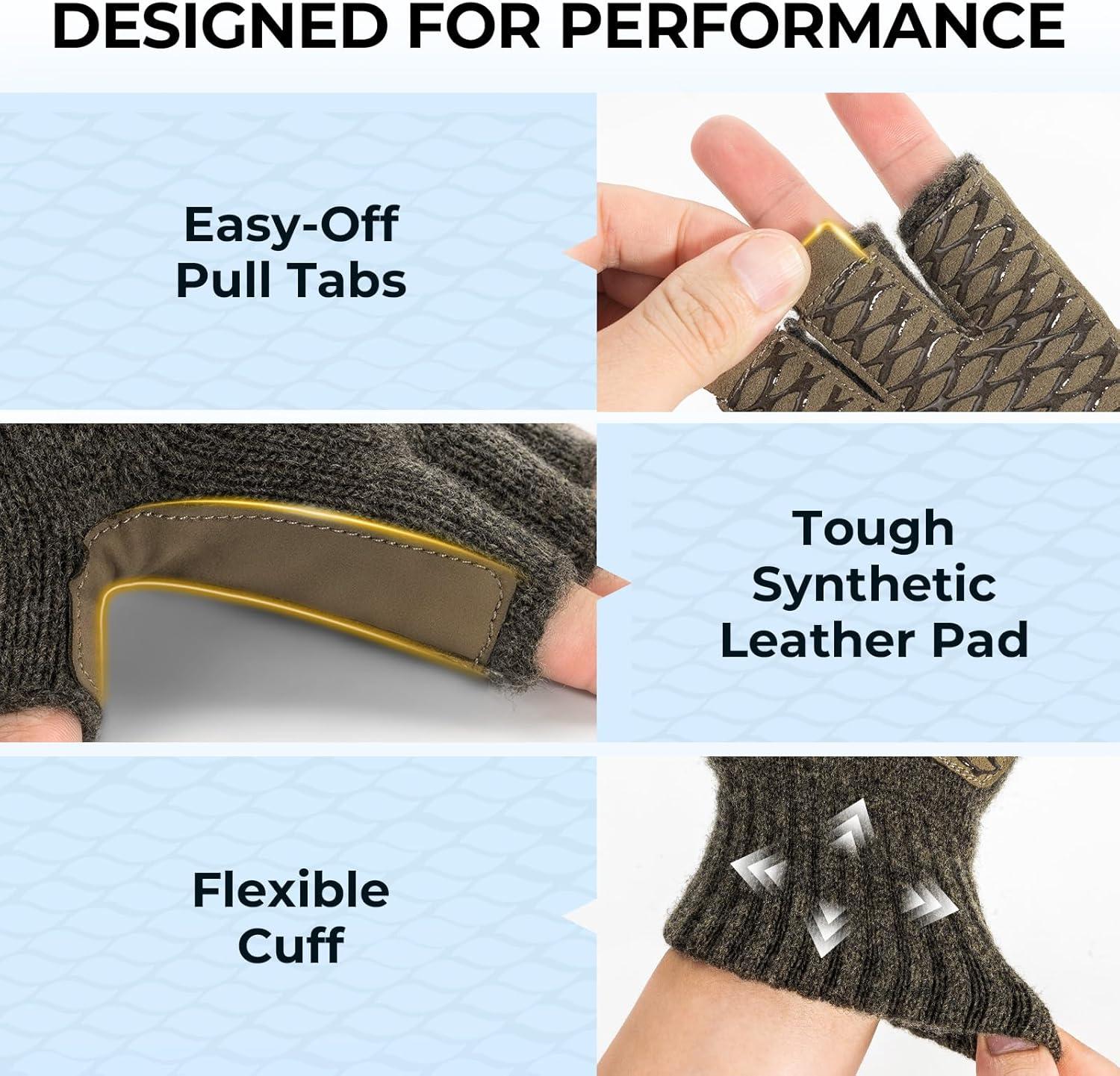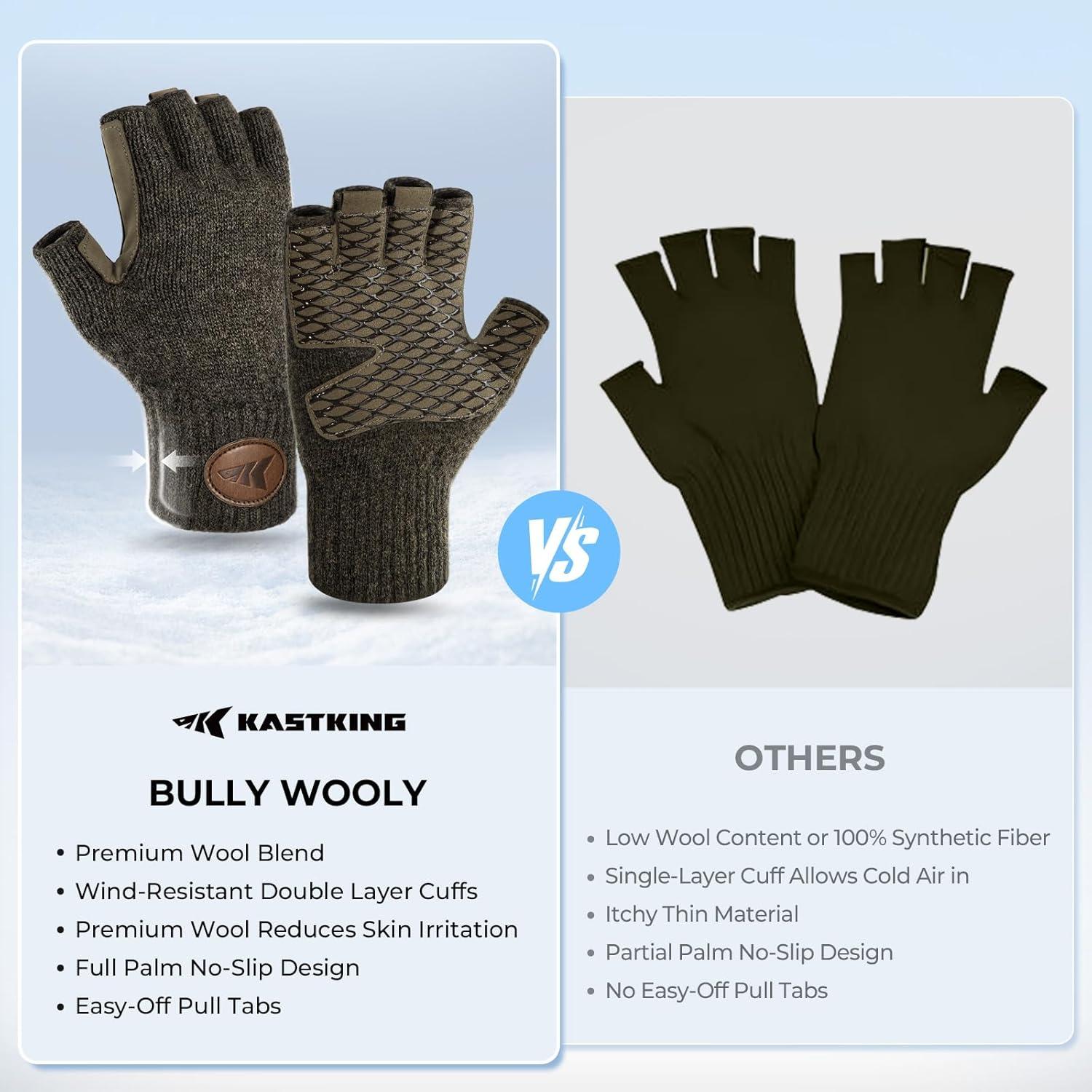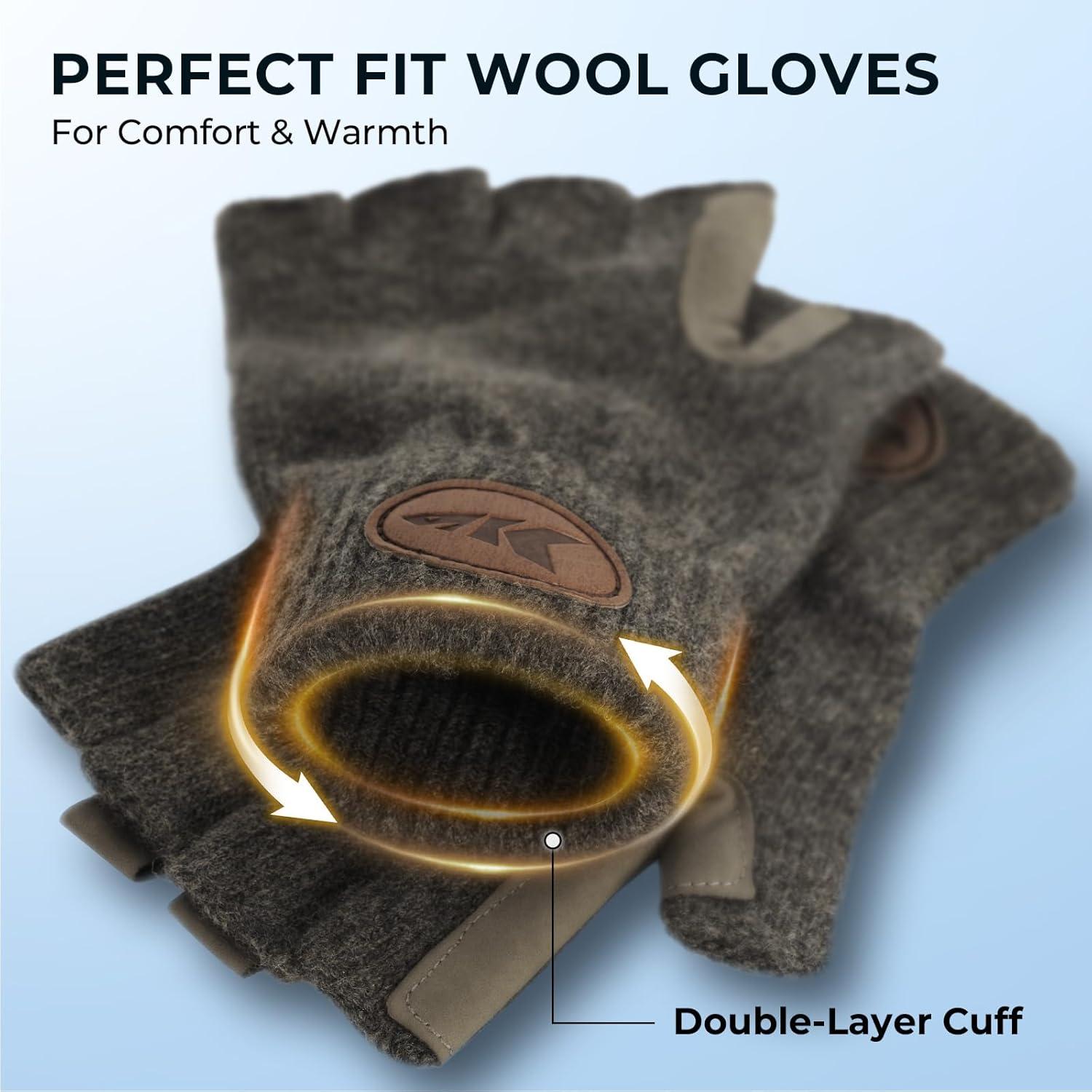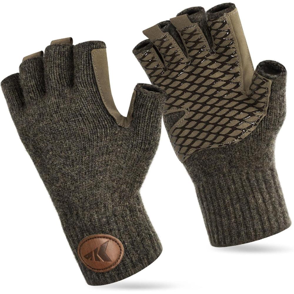 KastKing Bully Wooly Fingerless Wool Fishing Gloves, Cold Weather Warm Glove for Ice Fishing, Winter Gloves for Women & Men(Khaki)