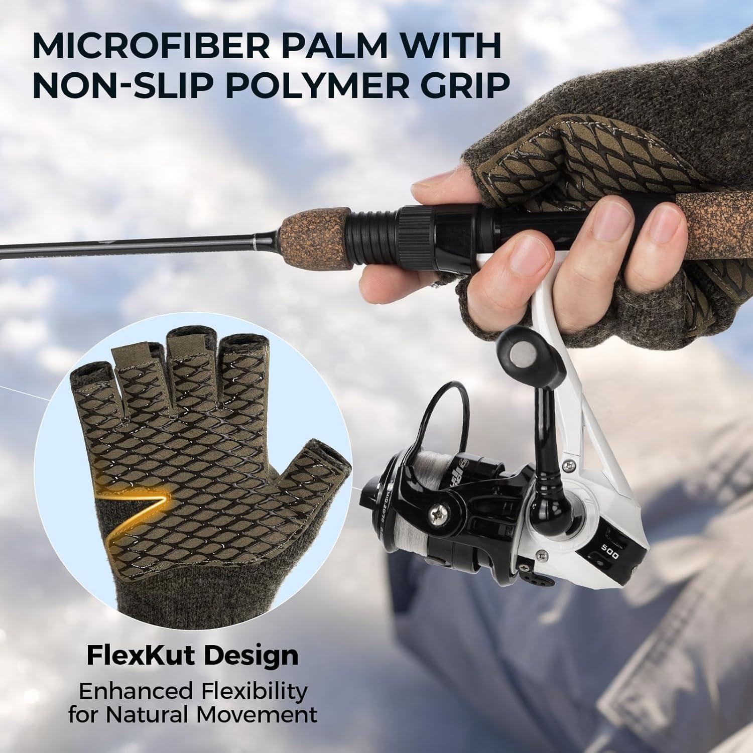 KastKing Bully Wooly Fingerless Wool Fishing Gloves, Cold Weather Warm Glove for Ice Fishing, Winter Gloves for Women & Men(Olive Green)