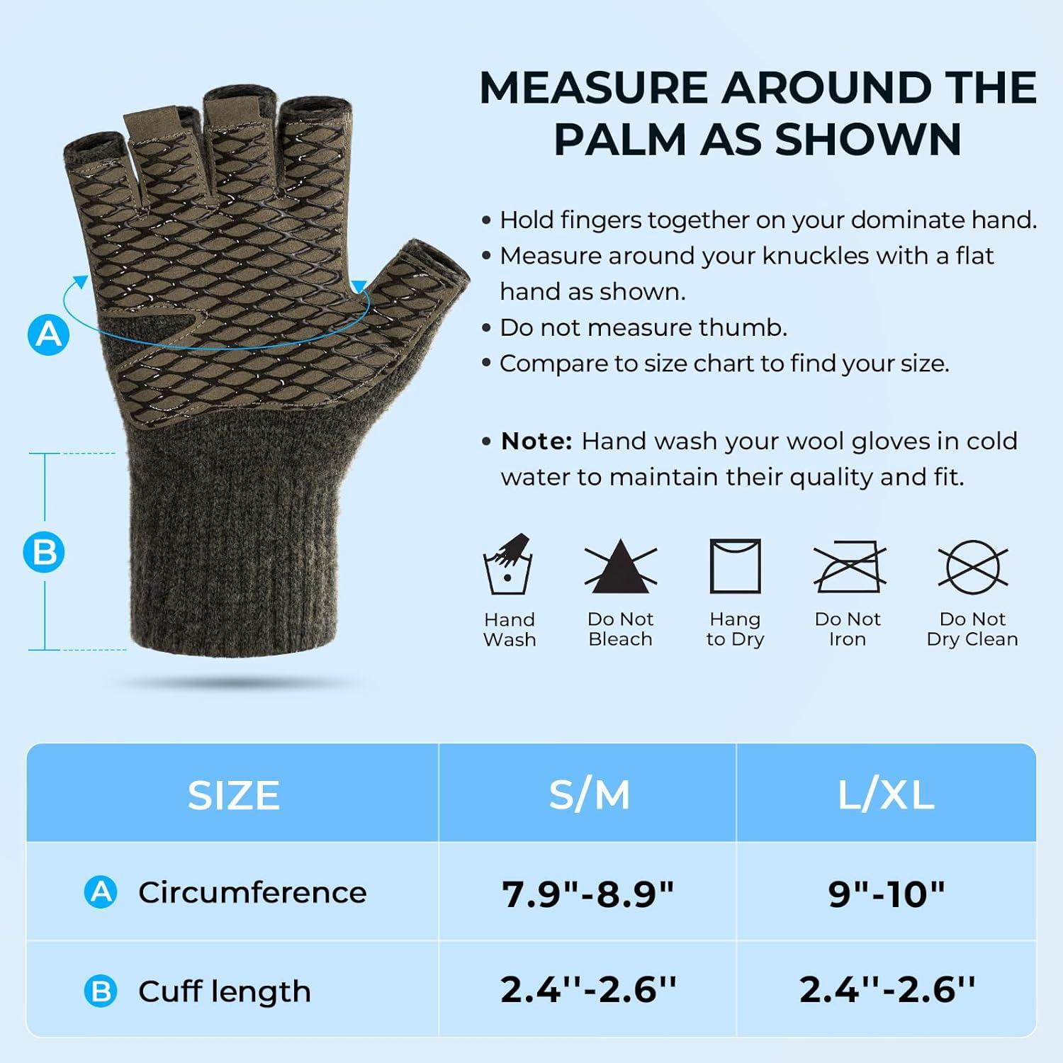 Superior Warmth: Crafted from a blend of 50% wool and 50% nylon, these warm fishing gloves offer excellent insulation. They maintain their warmth even when wet, ensuring your hands stay comfortable and functional in any conditions.