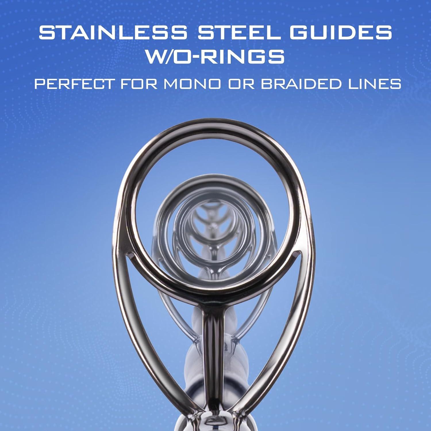 Stainless Steel Guides w/O-Rings – Strong and durable stainless-steel guides are used on all models with premium O-ring inserts that perform perfectly with both mono or braided lines. The lightweight stainless frames look great and keep the weight down for a perfectly balanced rod blank.