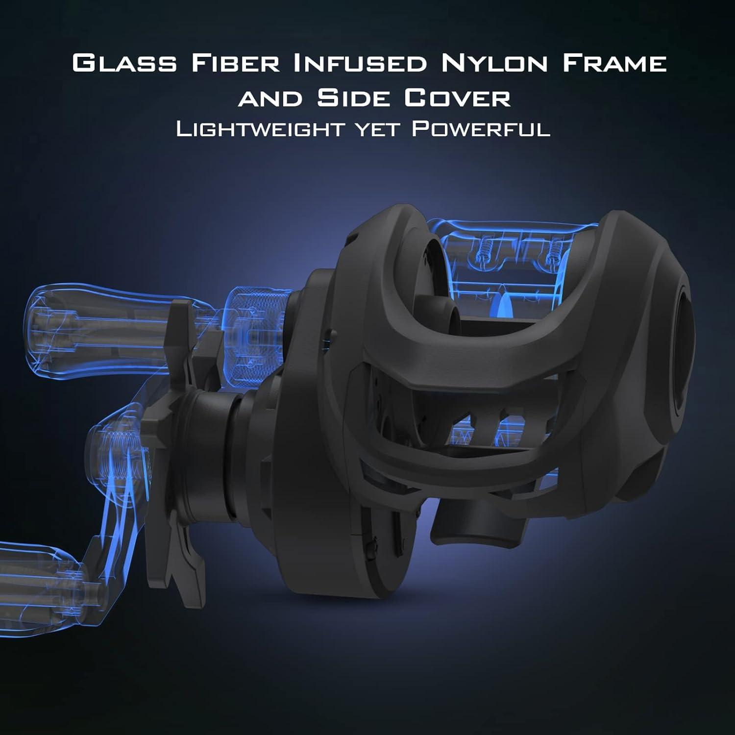 LIGHTWEIGHT – Weighing in at only 7.6 ounces, the Centron Lite Baitcasting Reel has a narrow, Glass Fiber infused Nylon frame that is ultra-light and ultra-powerful. The compact size low profile baitcaster fishing reel is ergonomically designed for comfort.