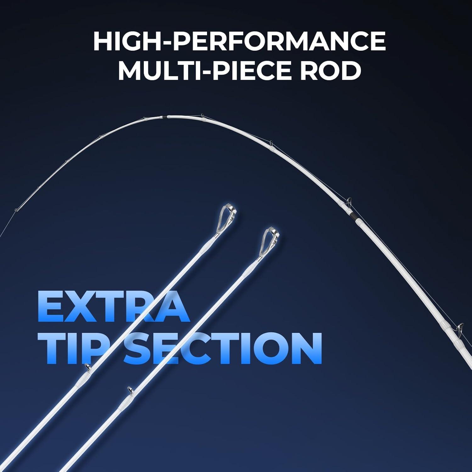 KastFlex IM6 Graphite + PTS One-Piece Feel: Built on responsive KastFlex IM6 graphite blanks for lighter weight, crisp sensitivity, and solid backbone. The Power Transition System (PTS) helps deliver a smooth, one-piece-like bend in a multi-piece rod, and the included matching spare tip section adds peace of mind on the water.