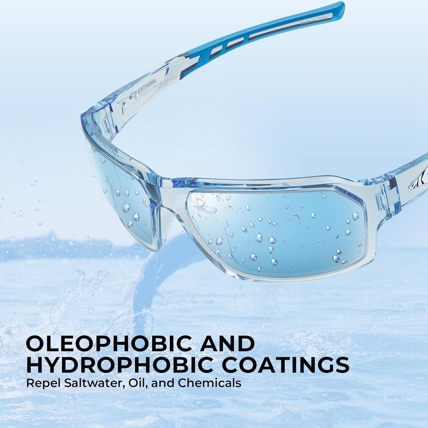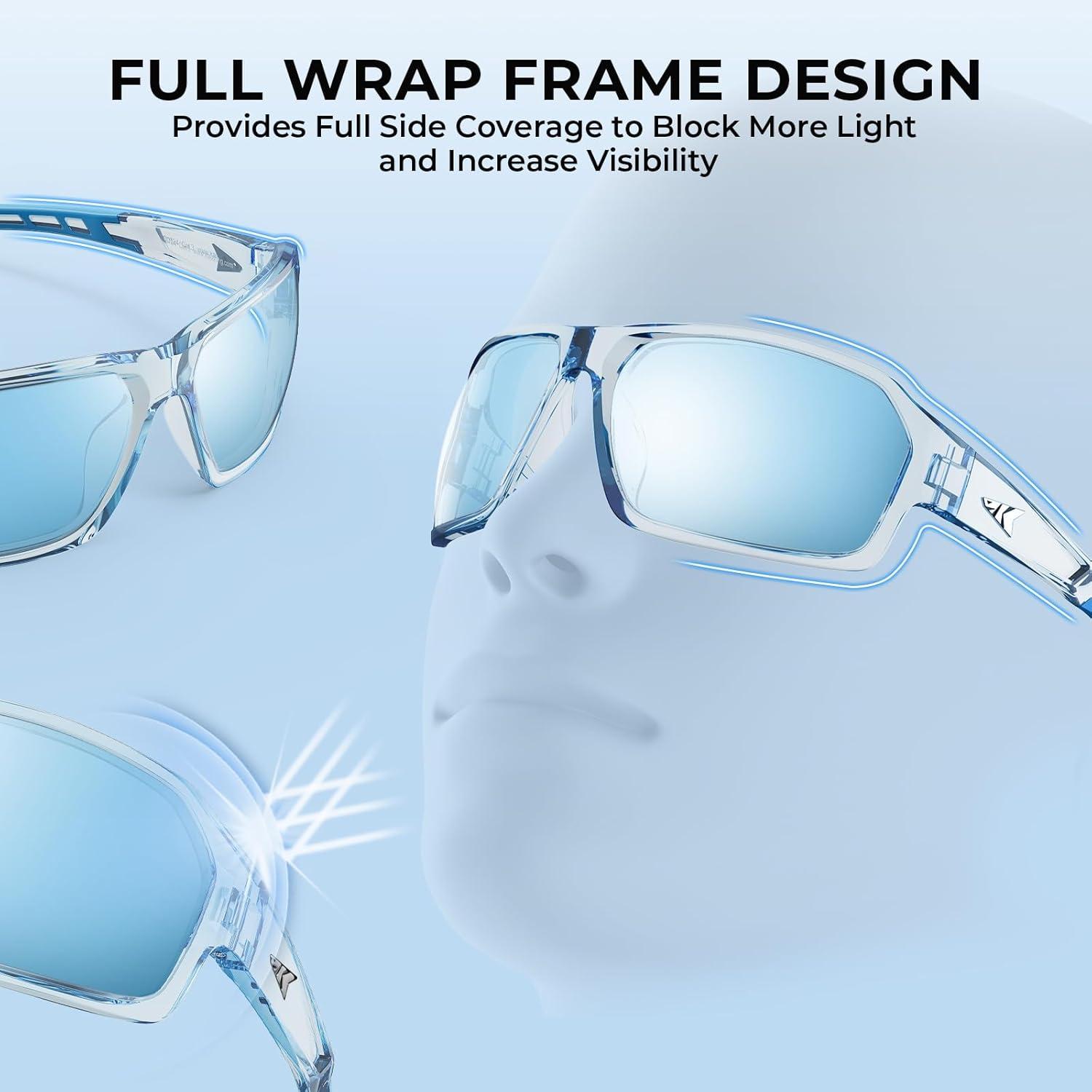 KastKing Chippewa Polarized Fishing Sunglasses, UV400 Protection Full Wrap Frame Sports Cycling Sunglasses, 1.0mm TAC Lenses(D: Gloss Tal Light Blue Frame Ice Blue Mirror)