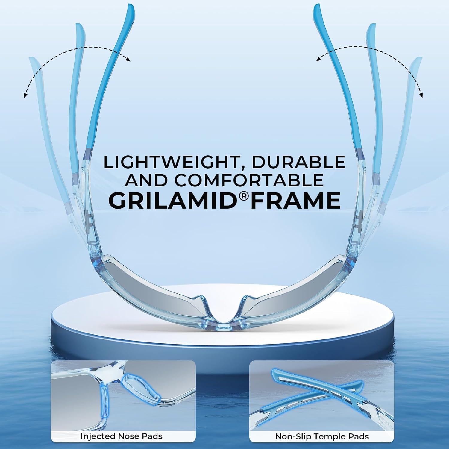 SUPERIOR LENSES – The polarized 1.0mm lenses are comparable to the thickness you would find on much higher priced sports eyewear. They help reduce glare caused by reflected light to improve vision and comfort. The TAC lenses pass a double decentering test to ensure there is no optical distortion which can cause eye strain and headaches. And the oleophobic lens coating creates an oil resistant, fingerprint resistant surface that is impervious to particles like dust and oils.