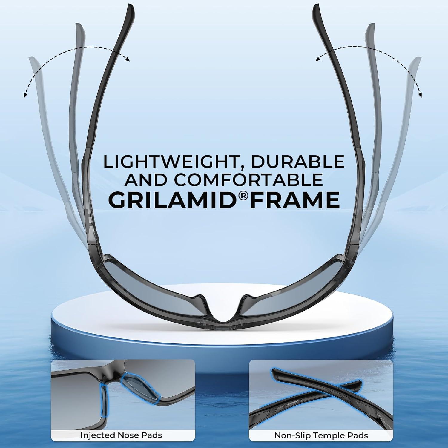 PREMIUM FRAMES – The Chippewa sunglasses’ full wrap frame design provides full side coverage to block more light and increase visibility, making the perfect for sports like fishing, biking, and golfing. Made from the same Grilamid material commonly used in military and medical applications, the sunglasses are lightweight, extremely flexible, and heat and UV400 resistant.