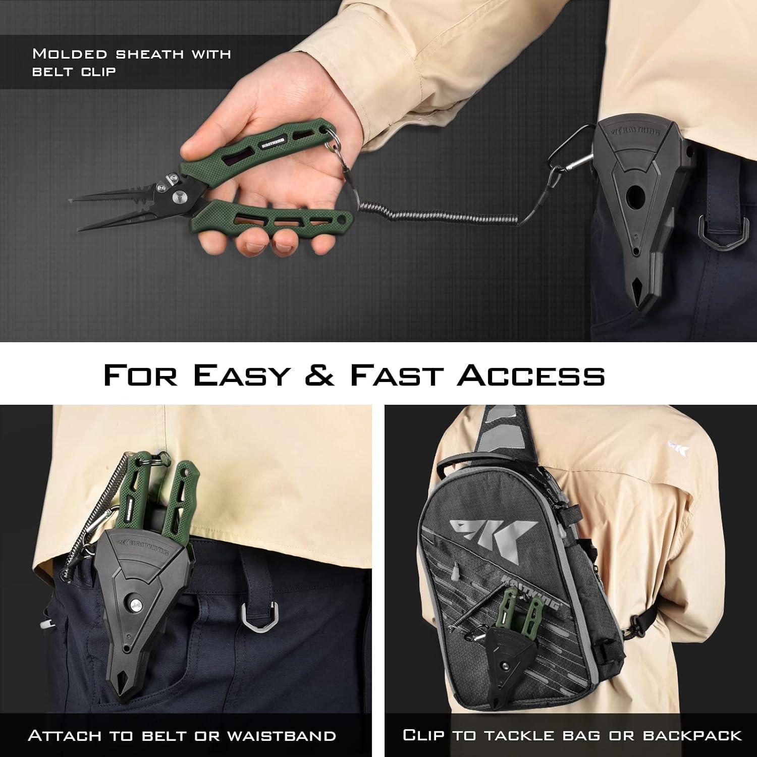 Sheath/Lanyard Included – Includes a custom molded sheath with belt clip to ensure your investment is protected from normal wear and tear. Clip on to your belt or the waistband of your shorts, to make sure you have quick access when a fish is on the line and the coiled lanyard will ensure your pliers don’t fall overboard!