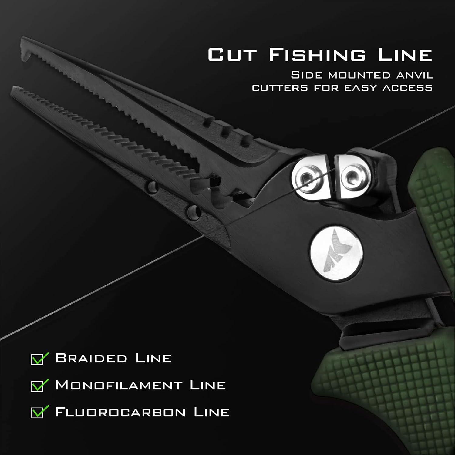 KastKing Cutthroat 7 inch Fishing Split Ring Pliers, 420 Stainless Steel Fishing Tools, Saltwater Resistant Fishing Gear, Tungsten Carbide Cutters(Stryker Green)