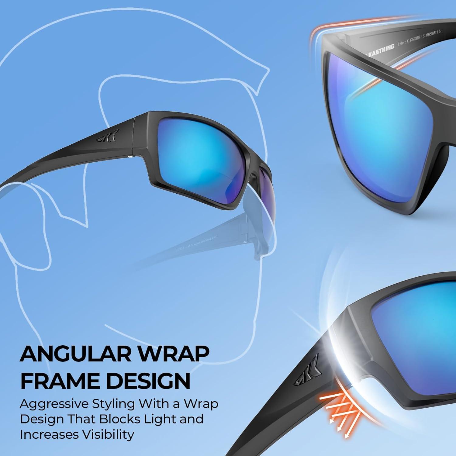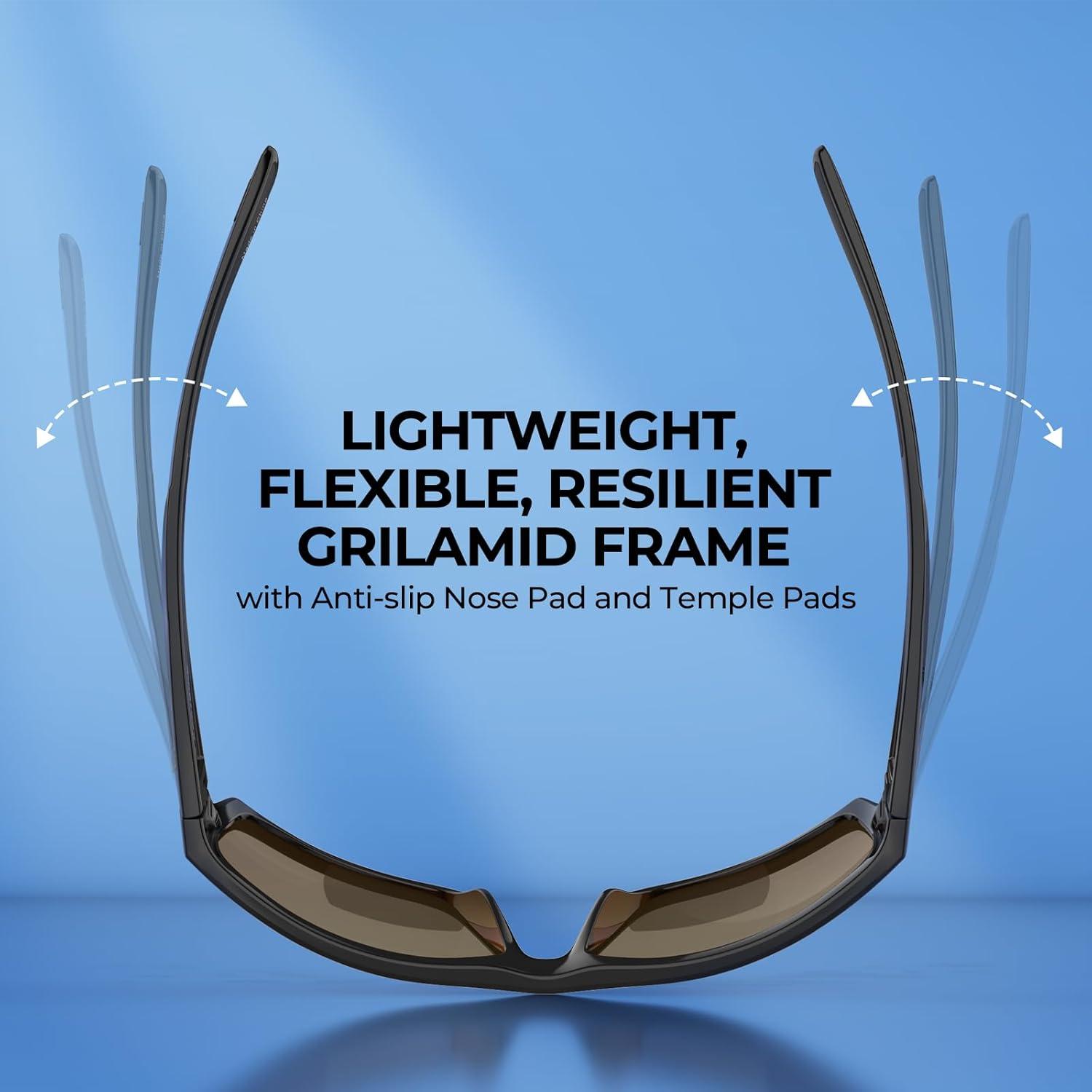 PREMIUM FRAMES – Made of Grilamid material commonly used by the military and in medical applications, KastKing frames are lightweight, extremely flexible and heat and UV resistant. The tacky nose pads and temple pads help to prevent slipping. The angular wrap design offers full coverage that blocks light and increases visibility, making it ideal for various activities like driving, biking, running, boating, fishing, and golfing.