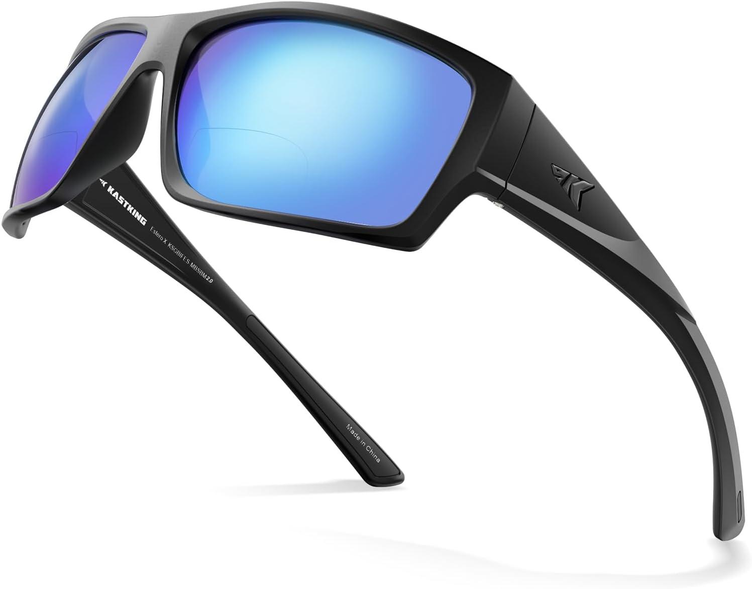 KastKing Estero Polarized Sunglasses,Bi-Focal x1.5x2.0x2.5 Magnifications,Wrap Frame Sport Reader Sunglasses for Men&Women(Matte Black Frame smoke Lens blue Mirror)