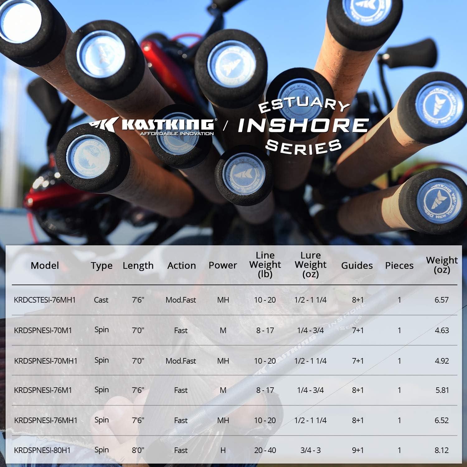 Saltwater Inshore Fishing Rods– New KastKing Estuary Saltwater InShore spinning rods and InShore casting rods are made specifically for inshore saltwater species like Striped Bass, Fluke, Tarpon, Snook, Red Fish, Cobia, Speckled Trout, and more. These fishing rods are incredibly light and powerful fast action rods that look great and stand up against extreme saltwater fishing conditions.