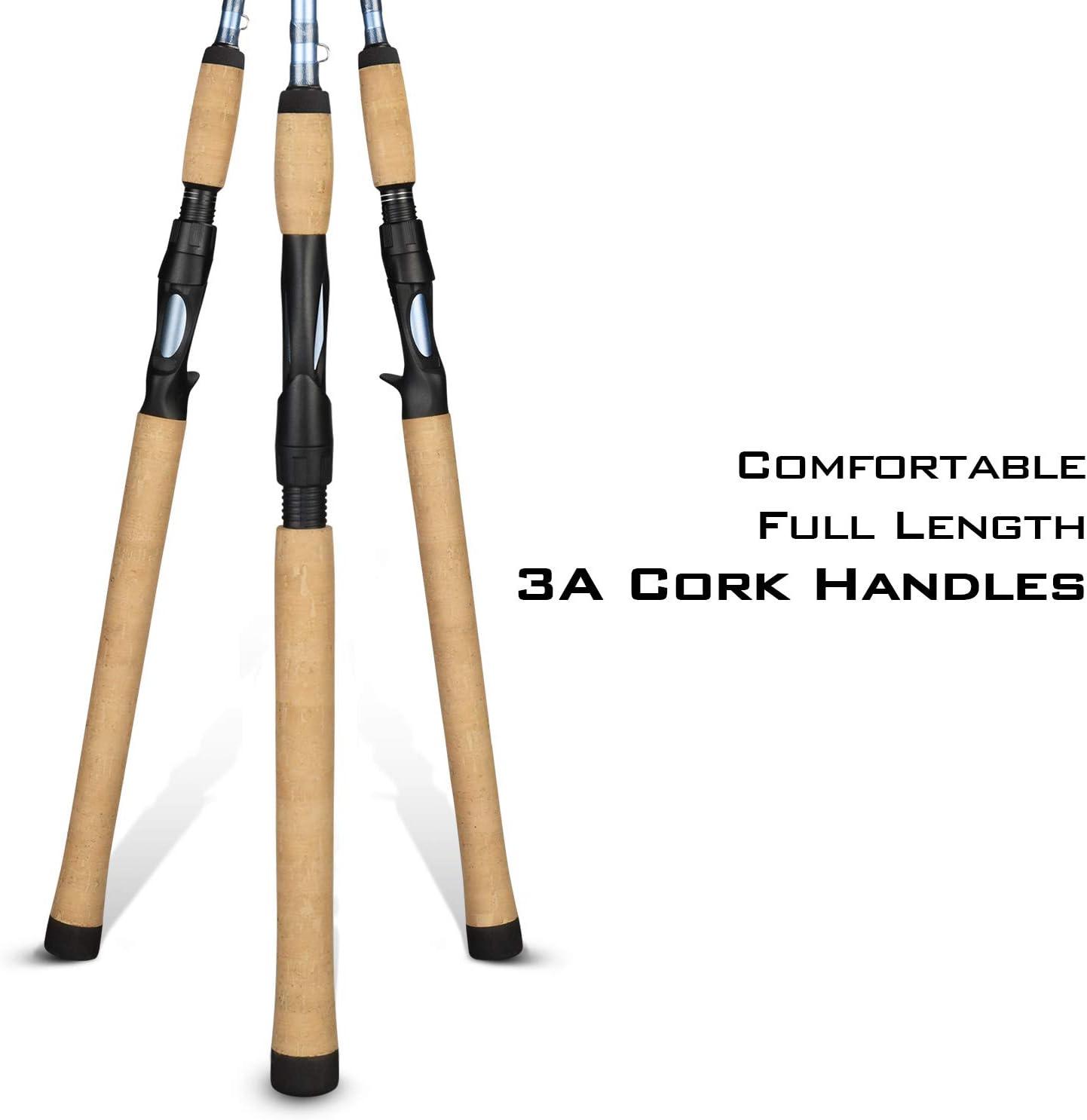 Full Length AAA Cork Handles – Full length, custom, select 3A cork handles with EVA protective end caps provide excellent comfort and give KastKing Estuary InShore Fishing Rods outstanding eye appeal. These high-quality cork handles are finished with high density EVA sections to protect the rod and cork handle during use. The rear handle is finished with an engraved Aluminum butt cap.