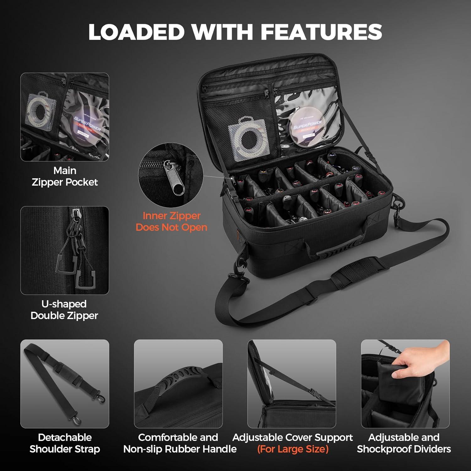 Loaded with Features: Includes a robust U-shaped double zipper, a detachable shoulder strap for versatile carrying options, a comfortable and non-slip rubber handle, and adjustable cover support for large size that secure the lid, preventing accidental falls. Multiple storage pouches offer ample space for additional fishing accessories, ensuring organized and efficient storage.