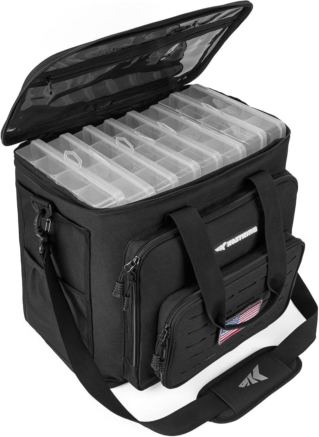 KastKing Fishing Tackle Bags - Saltwater & Freshwater Fishing Bags - Water Resistant, Padded Shoulder Strap - Gear Storage(Black-Large)