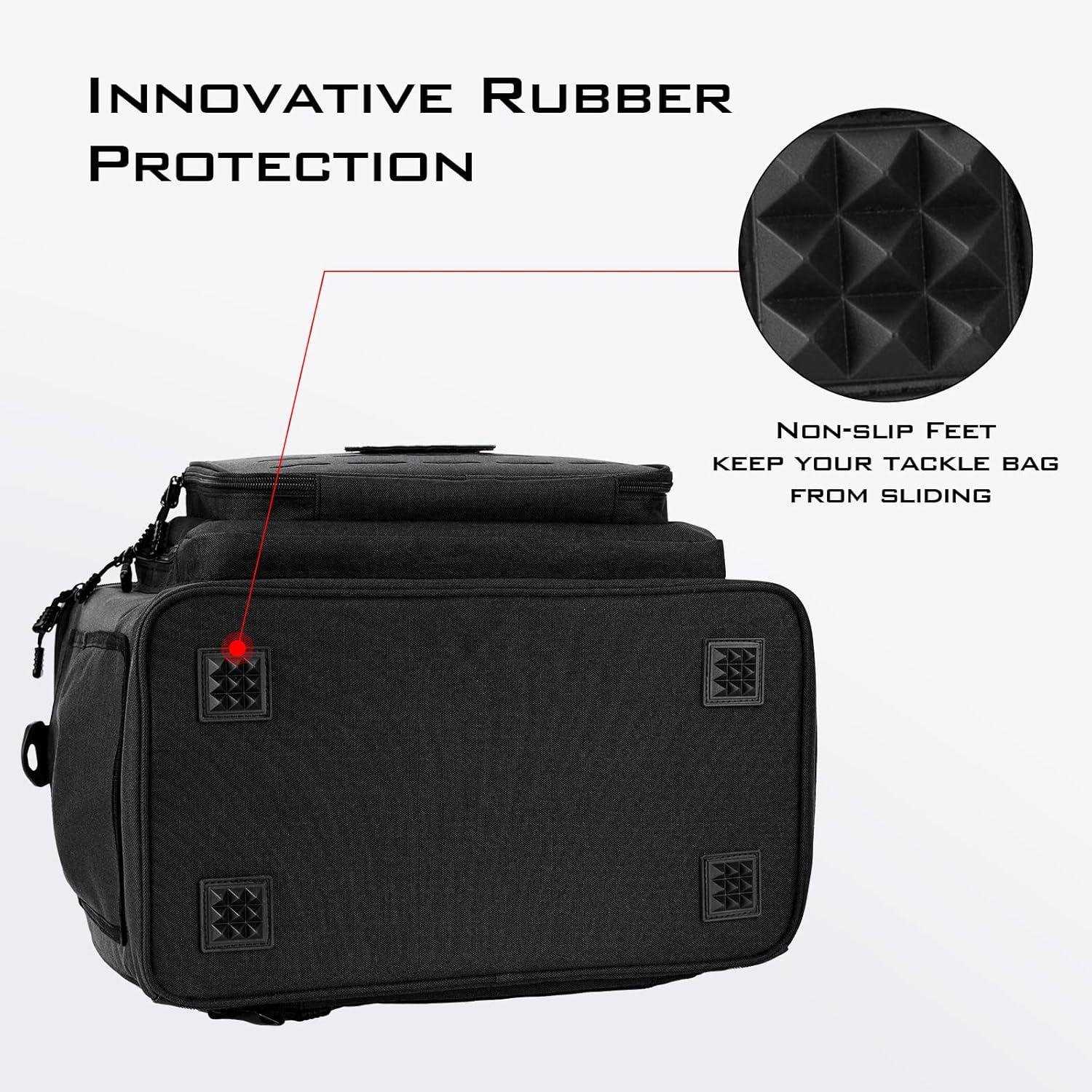 TOUGH AND WATER RESISTANT – KastKing Karryall Tackle Bags are made of tear and abrasion resistant 600D oxford material, which provides exceptional long-term performance and reliability. The hydrophobic coating drains water from the outside and the inner PVC layer provides protection to ensure your fishing tackle is protected from the elements. The rubber non-slip foot pads grip any surface to ensure the bag doesn’t slide.