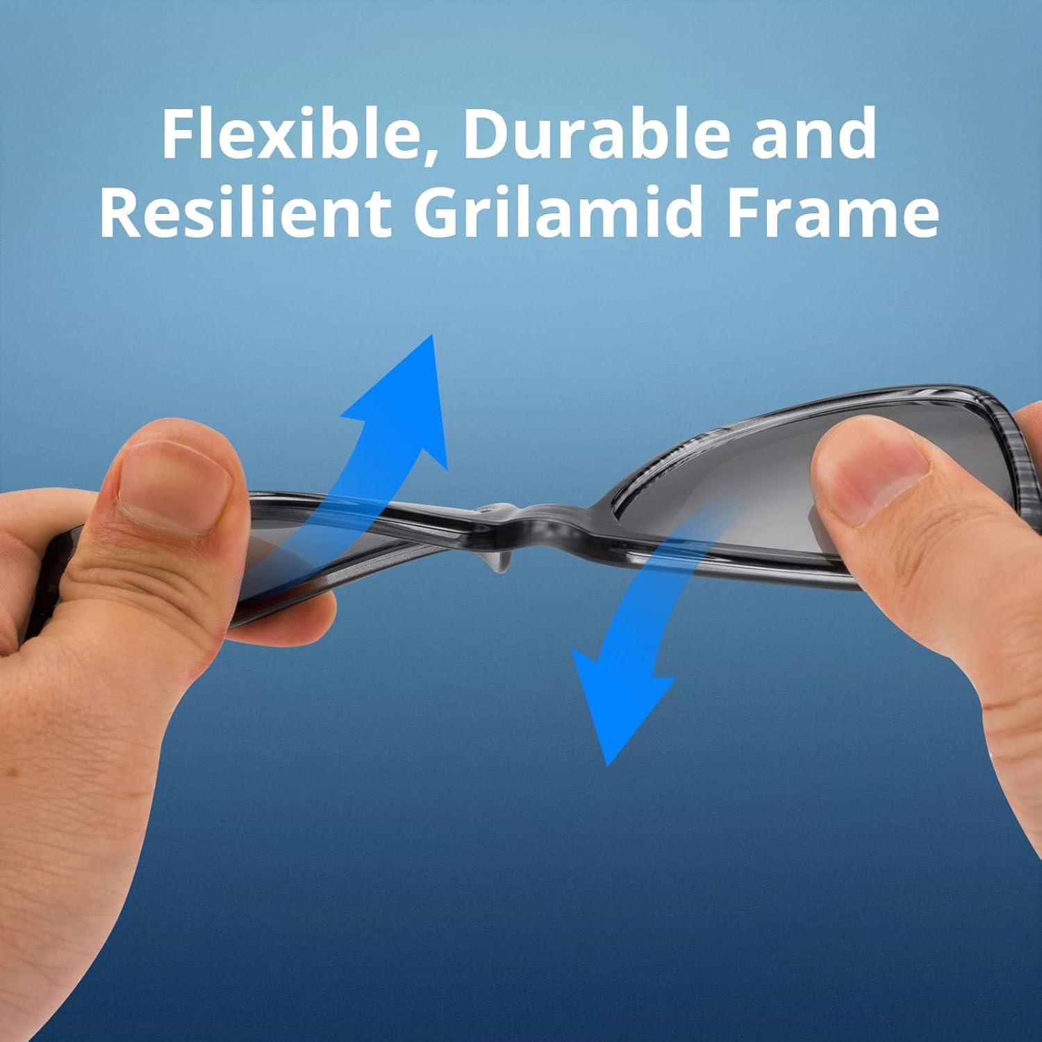 SUPERIOR AND SUPER LIGHTWEIGHT FRAMES – Made from the same Grilamid material commonly used by the military and in medical applications, our frames are greatly lightweight, extremely flexible, and heat and UV resistant. Grilamid frames are well known for their strength, lightweight comfort, shape integrity, and impact resistance. This ultra-lightweight and malleable material translates to a very comfortable fit
