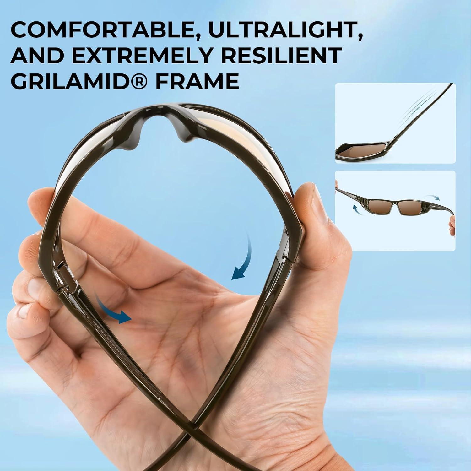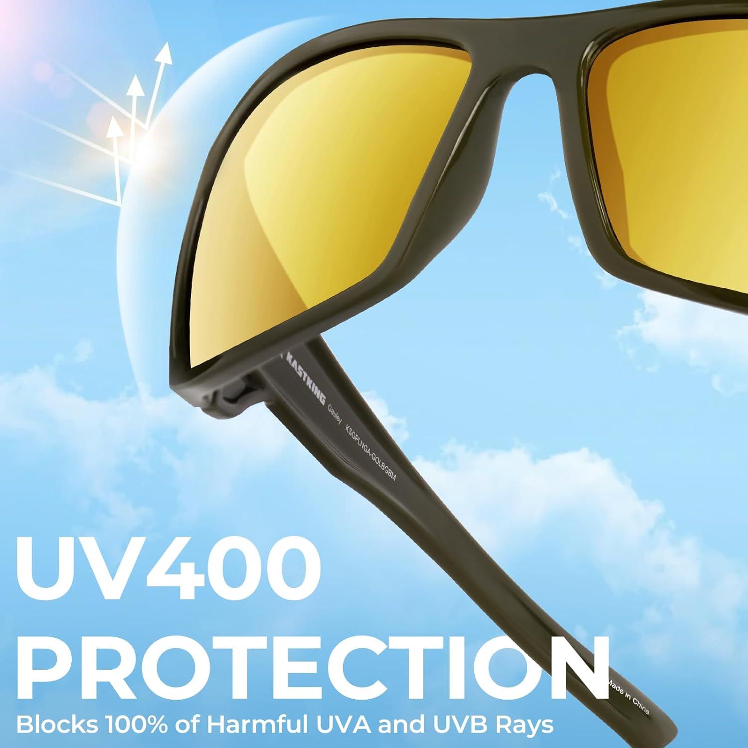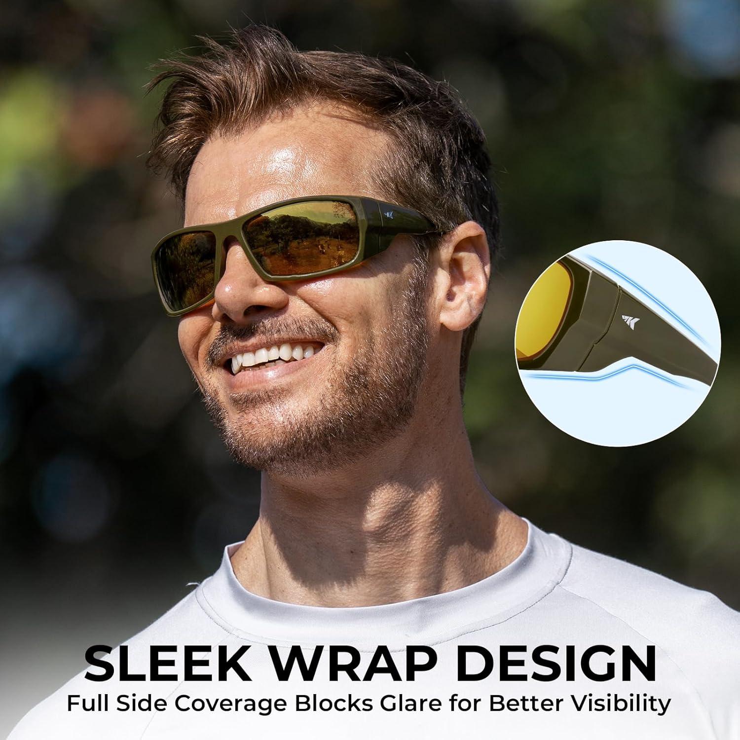 KastKing Gauley Polarized Sunglasses With PuriVex Protective Lens Coating,UV 400 and Wrap Design Sport Fishing Sunglasses(E: Gloss Solid Olive Frame Golden Bronze Mirror)