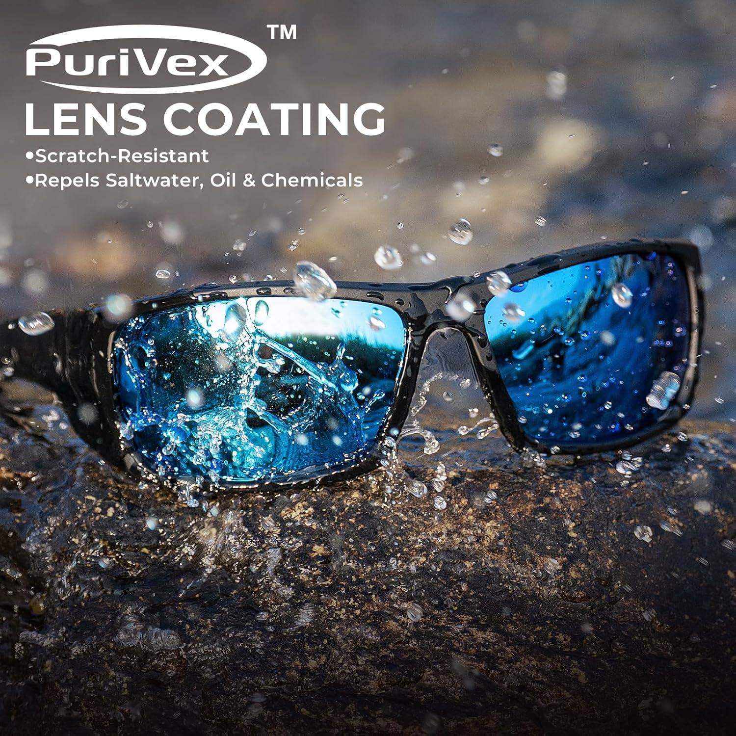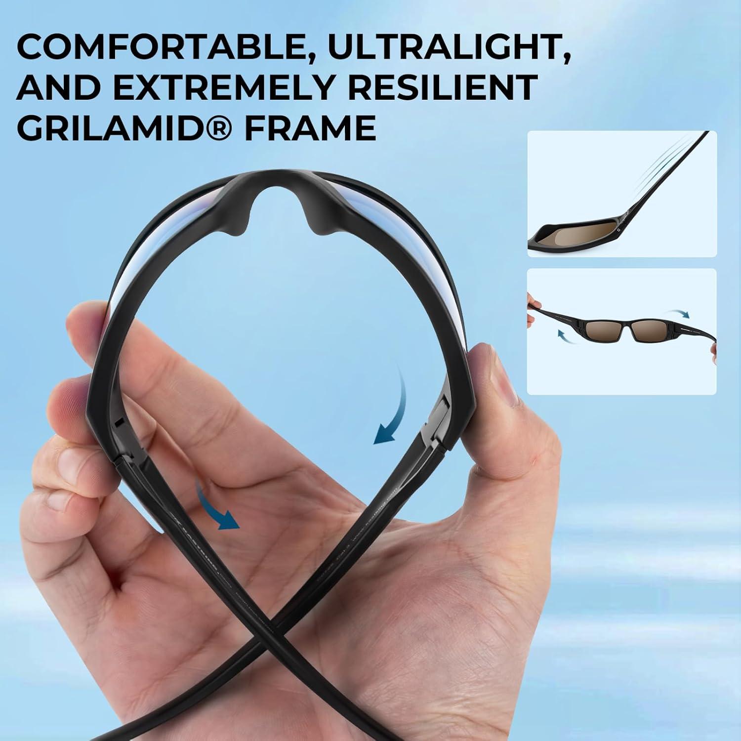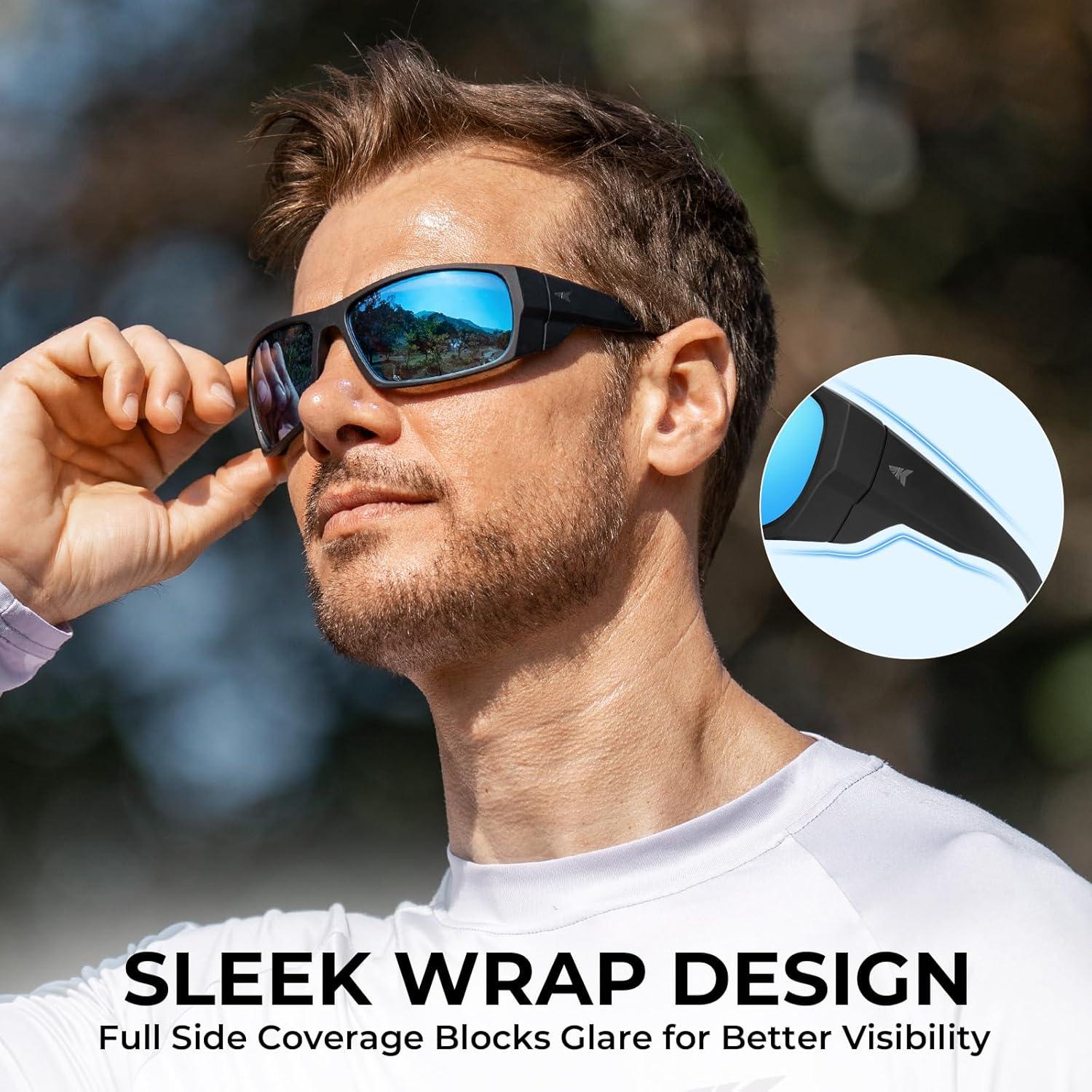 KastKing Gauley Polarized Sunglasses With PuriVex Protective Lens Coating,UV 400 and Wrap Design Sport Fishing Sunglasses(G: Matte Black Frame Ice Blue Mirror)