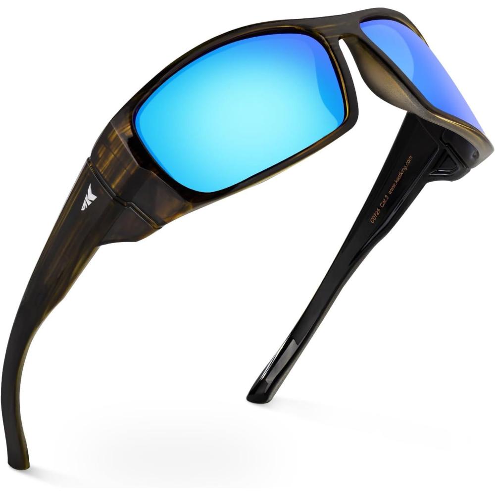 KastKing Gauley Polarized Sunglasses With PuriVex Protective Lens Coating,UV 400 and Wrap Design Sport Fishing Sunglasses(J: Dark Brown Texture Frame Blue Ocean)
