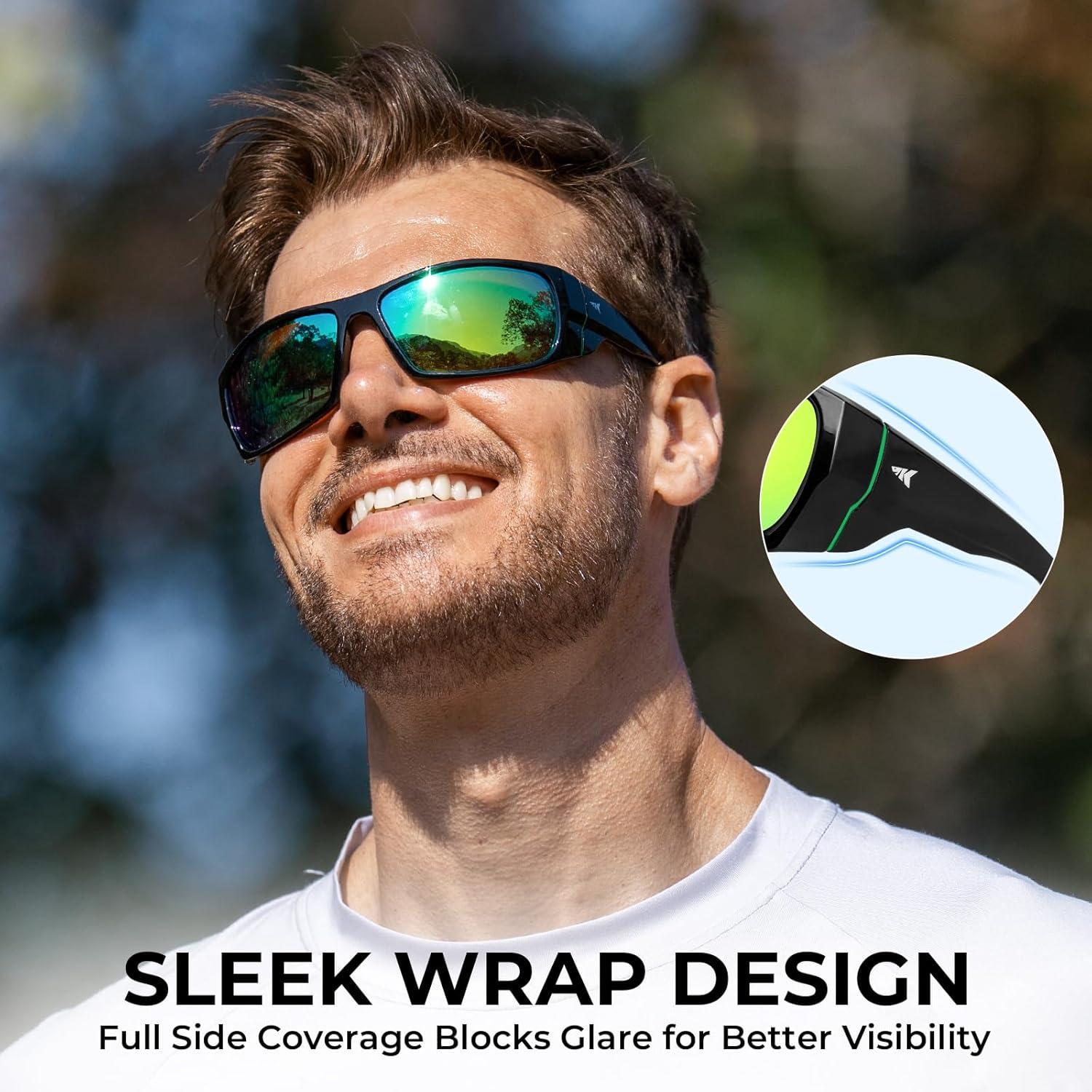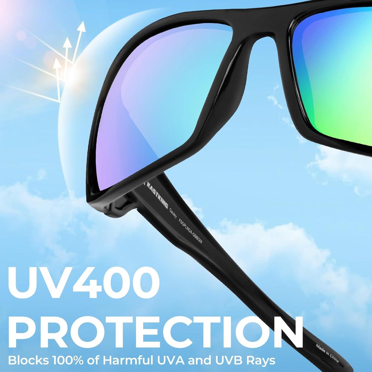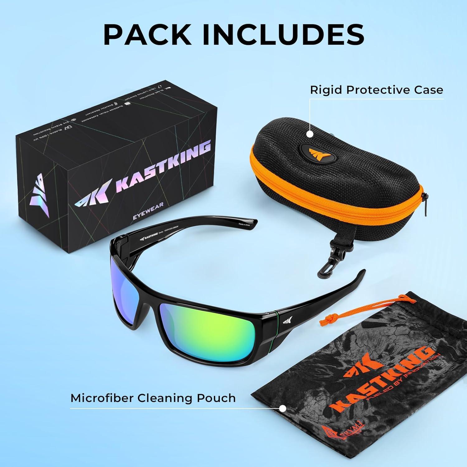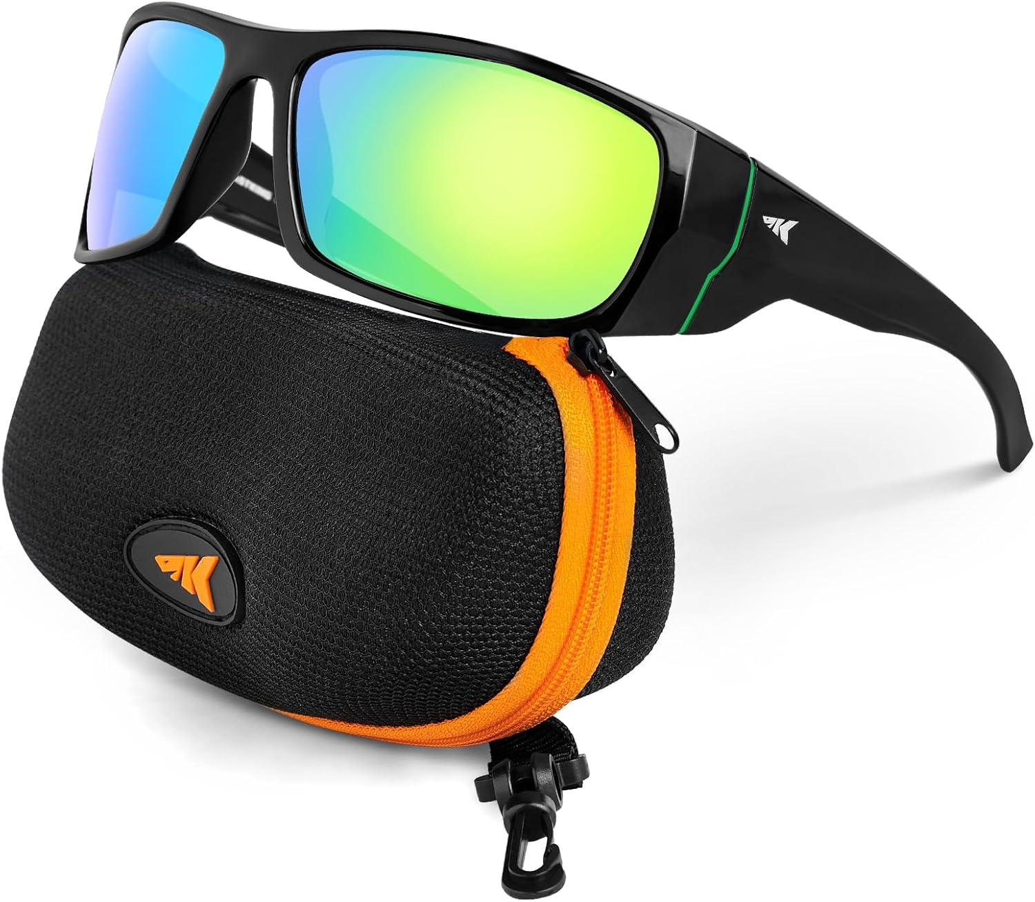 KastKing Gauley Polarized Sunglasses With PuriVex Protective Lens Coating,UV 400 and Wrap Design Sport Fishing Sunglasses(K: Black Frame Chartruesse Mirror)