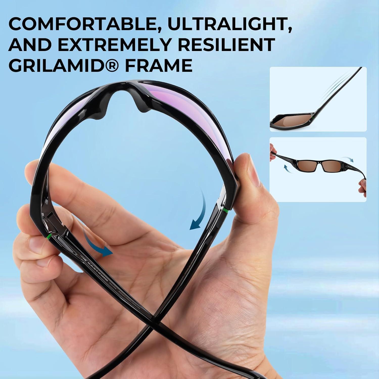 KastKing Gauley Polarized Sunglasses With PuriVex Protective Lens Coating,UV 400 and Wrap Design Sport Fishing Sunglasses(L: Yellow Demi Frame Brown)