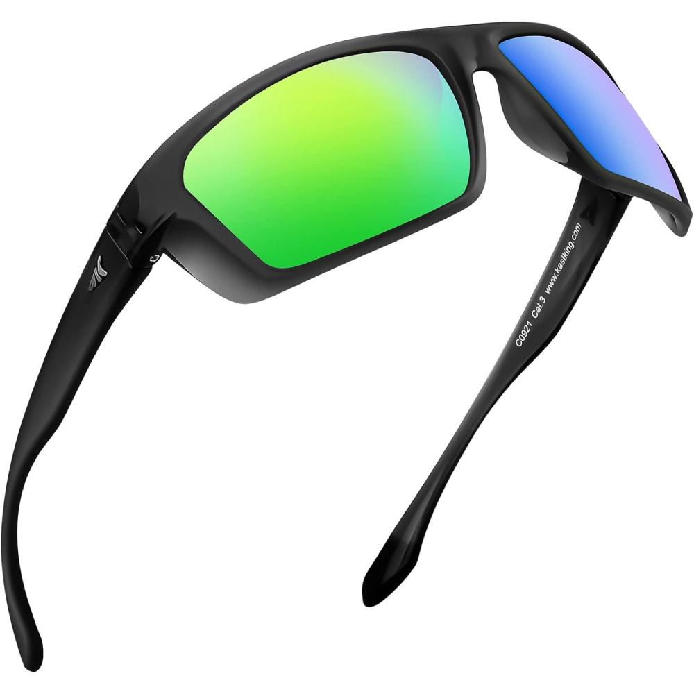 KastKing Huzzah Polarized Sport Sunglasses for Men and Women, Ideal for Driving Fishing Cycling and Running,UV Protection(Frame: Gloss Smoke Crystal /Lens: Chartreuse Mirror)