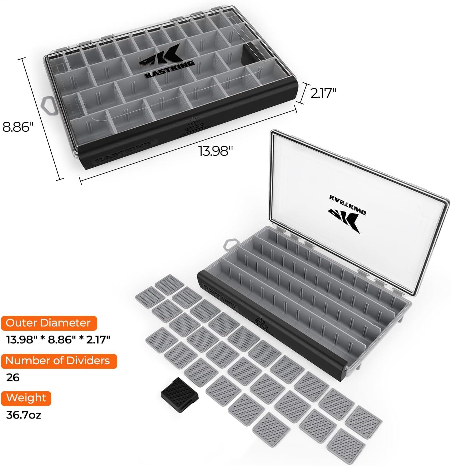 Available in Two Sizes: The KastKing HyperSeal Waterproof Tackle Box comes in two different sizes, 3600 and 3700 boxes that fit in popular tackle bags or boat storage systems. Each provides ample space for organizing all your fishing gear, from crankbaits, jerkbaits, spinners, spoons and so much more. Also works great for hooks and terminal tackle.