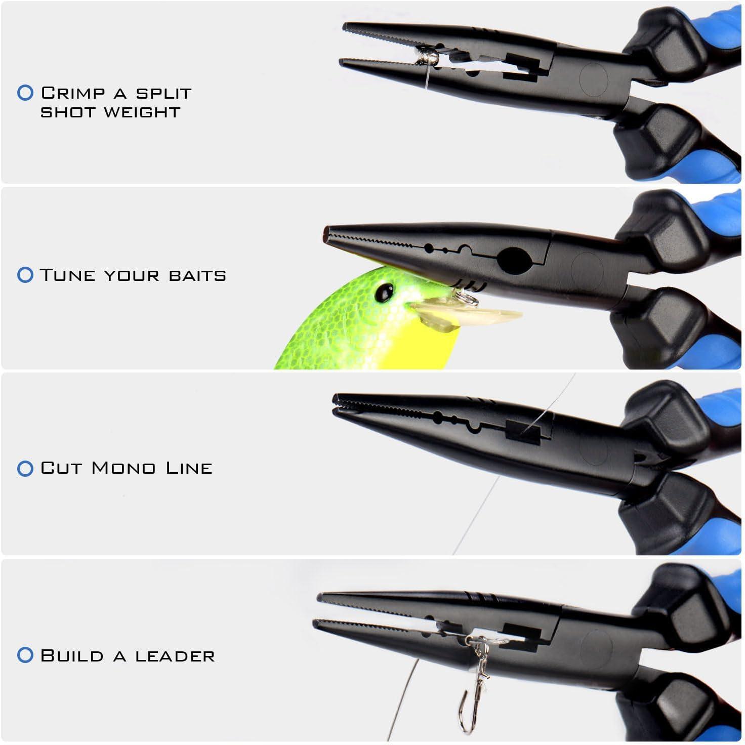 Multi-Function Jaws– Grab and remove any fish hook with the serrated jaws or take advantage of the crimping slots to secure a split shot weight or build a leader. Use the built-in wire cutter to trim wire, cable, or mono.