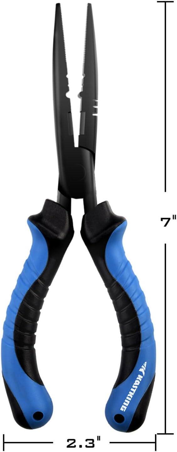 KastKing Intimidator Fishing Pliers, Corrosion Resistant Polymer Coated Fishing Tools, Tungsten Carbide Cutters, Saltwater Resistant Fishing Gear(D:7" Straight Nose)