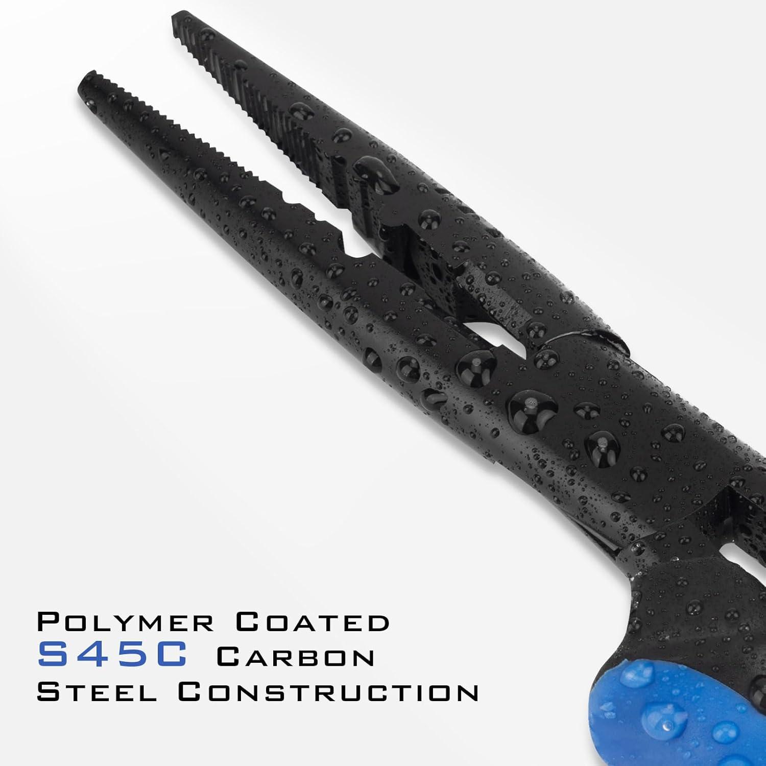 KastKing Intimidator Fishing Pliers, Corrosion Resistant Polymer Coated Fishing Tools, Tungsten Carbide Cutters, Saltwater Resistant Fishing Gear(E:7″ Bent Nose)