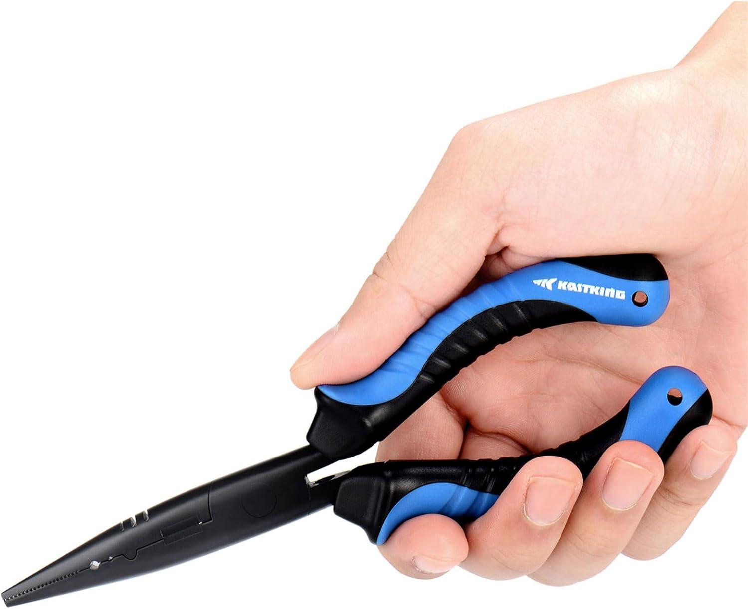 KastKing Intimidator Fishing Pliers, Corrosion Resistant Polymer Coated Fishing Tools, Tungsten Carbide Cutters, Saltwater Resistant Fishing Gear(D:7″ Straight Nose)
